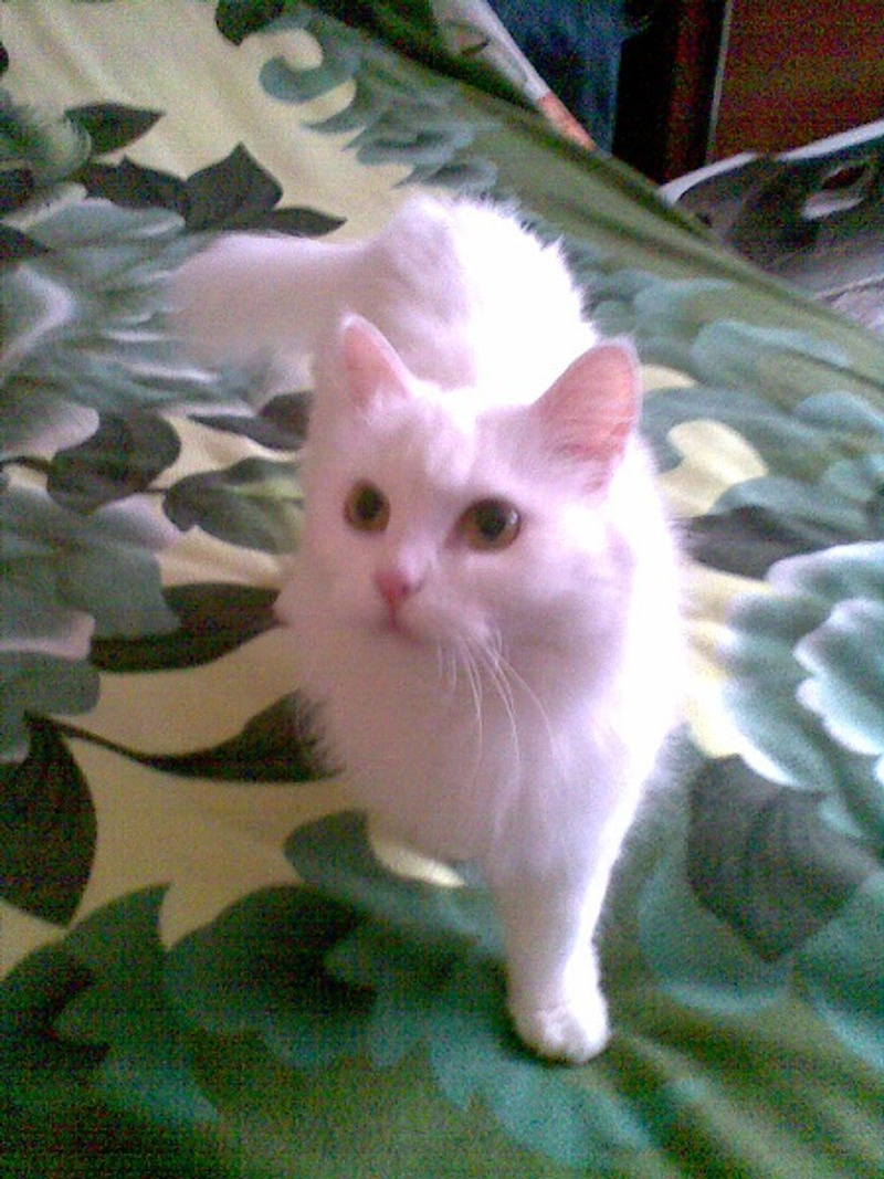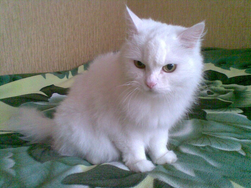 Кушает всё, ходит в лоток, всегда бежит встречать когда прихожу домой, очень ласковая... возраст примерно года 3.