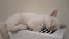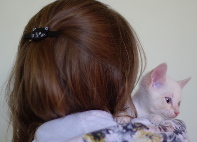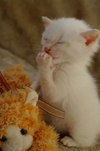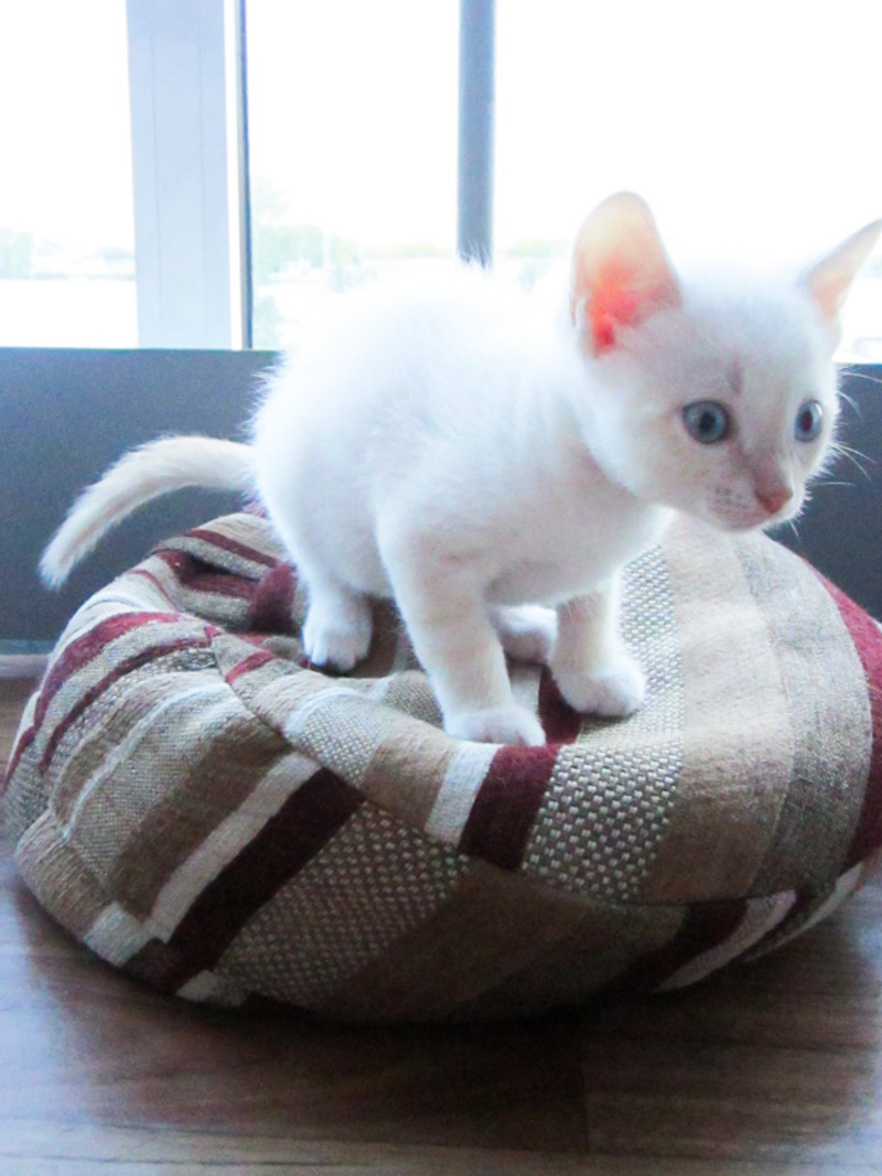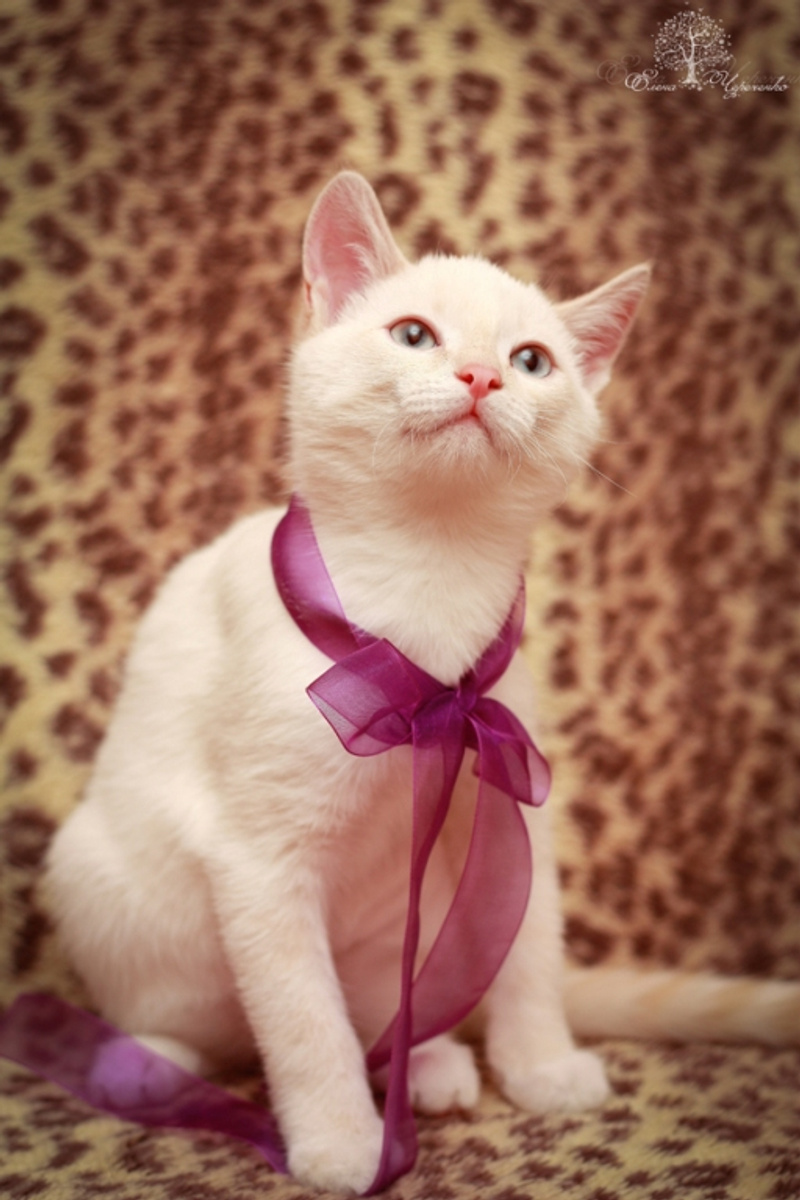 Беленький мальчик, очень любит внимание, первый научился мурчать, когда я ему делала массажик животика.