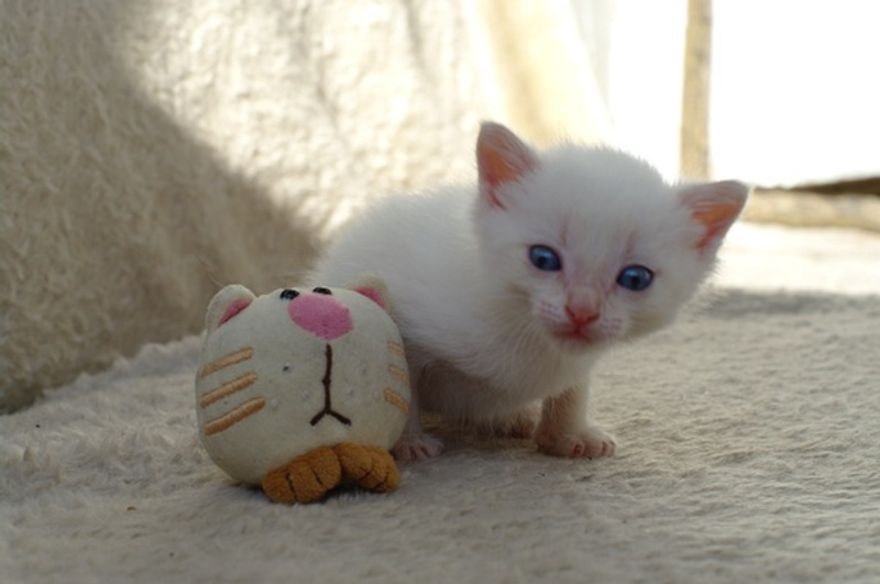 Девочка будет окраса поинт. Она ещё в понедельник научилась сама кушать из соски, всегда соблюдает режим и никаких капризов. Сегодня научилась играть и демонстрировала своё умение братику.