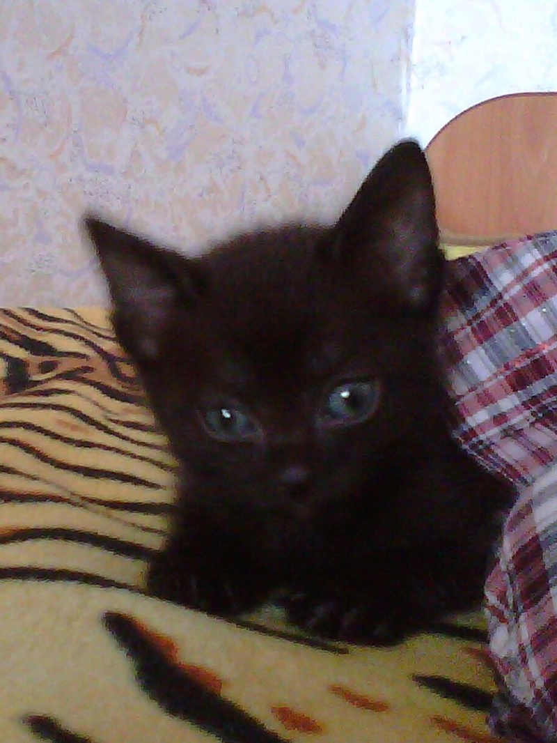 Кошечка, 1-1.5 мес., черная с хитрыми серо-зелеными глазками, ищет добрых хозяев. Подкинули в приемную комиссию НГТУ 09.08.2011 /за что отдельное спасибо исполнителям/.