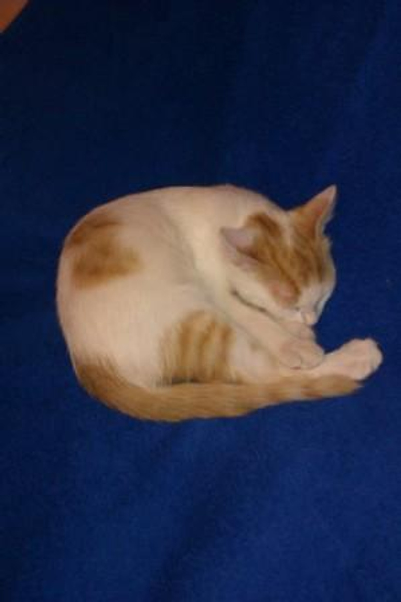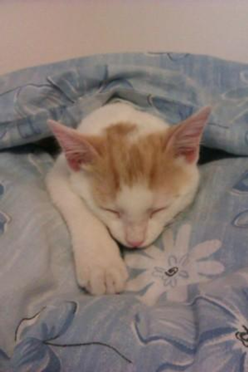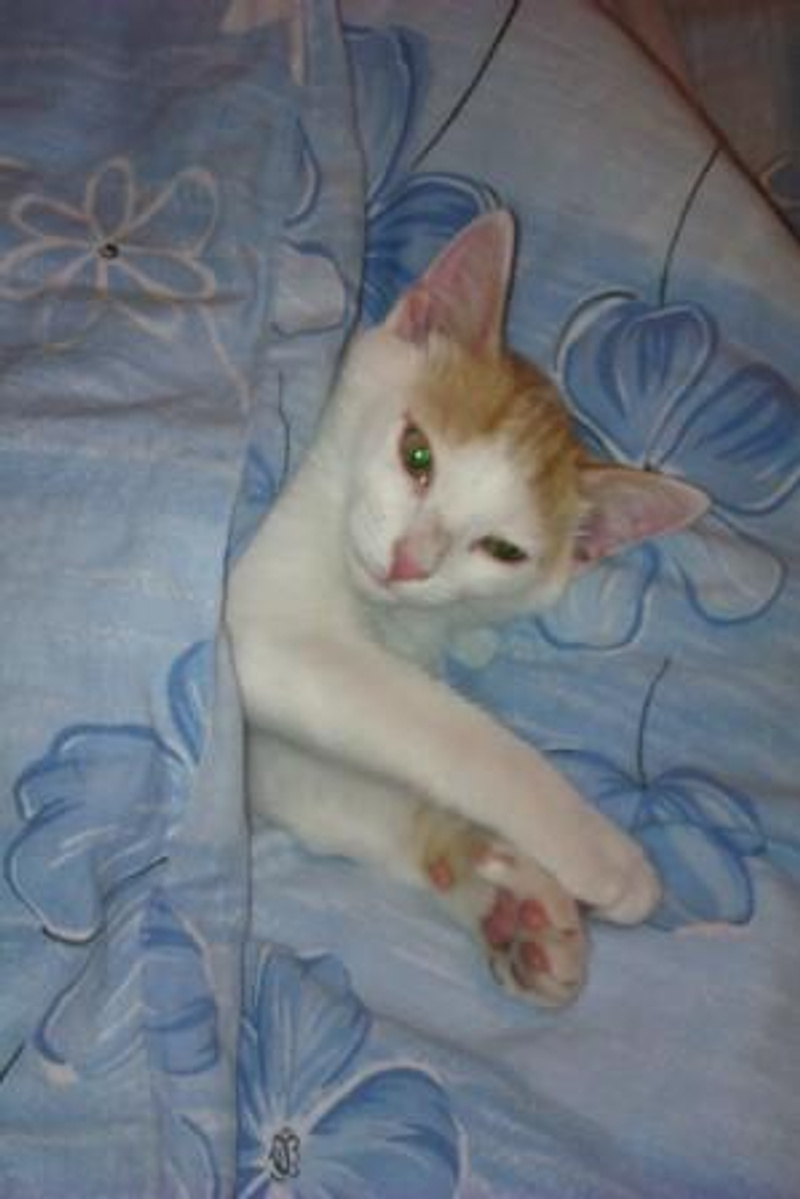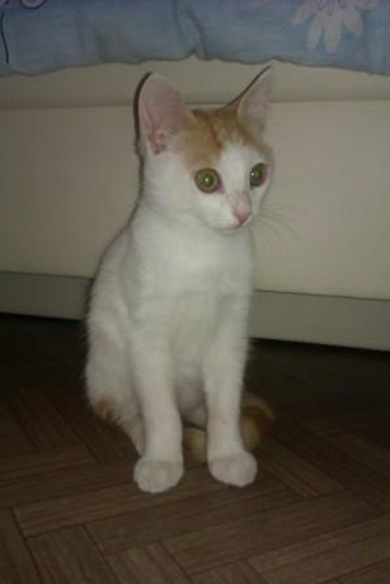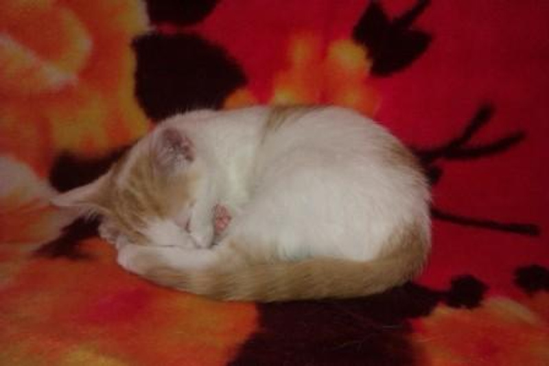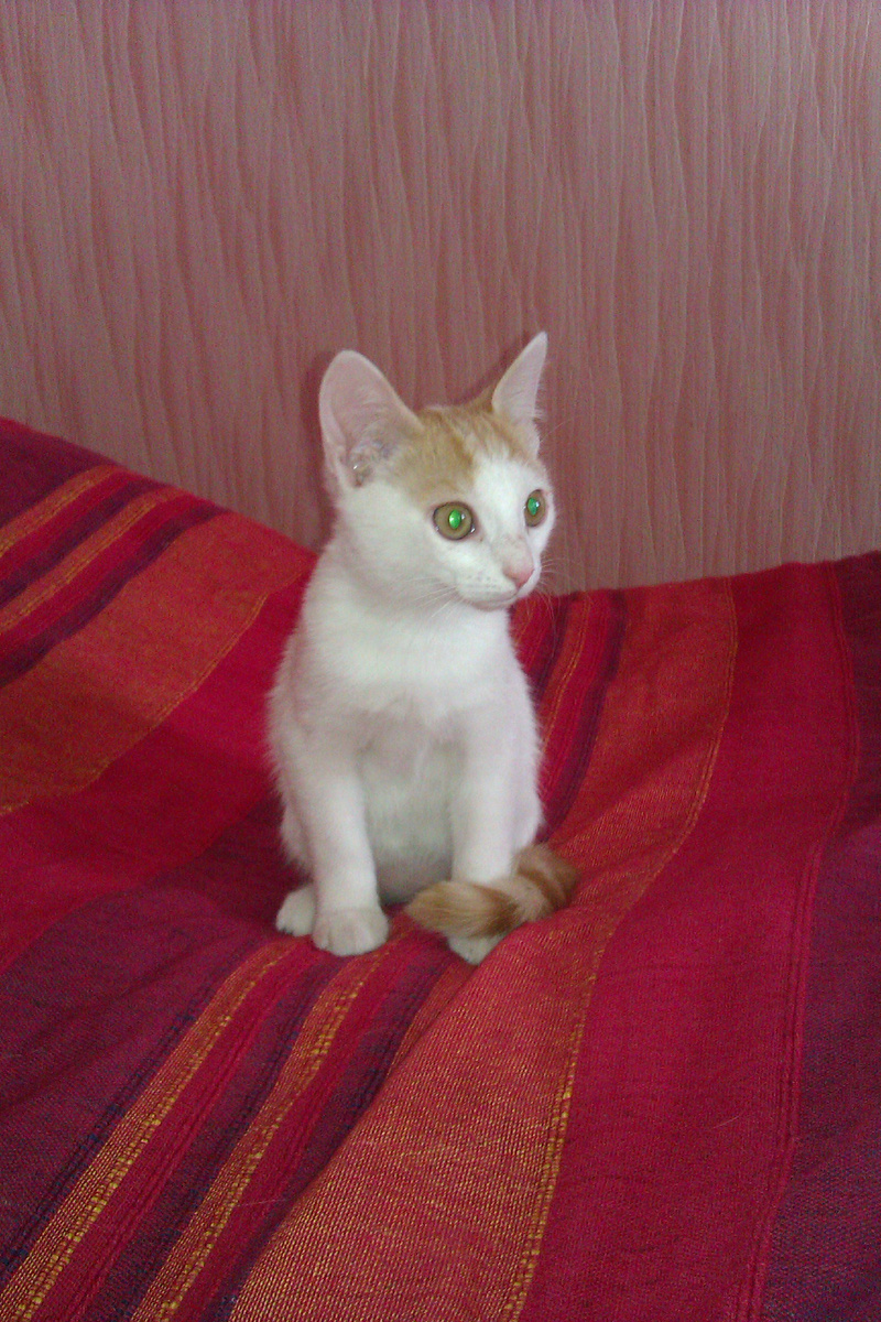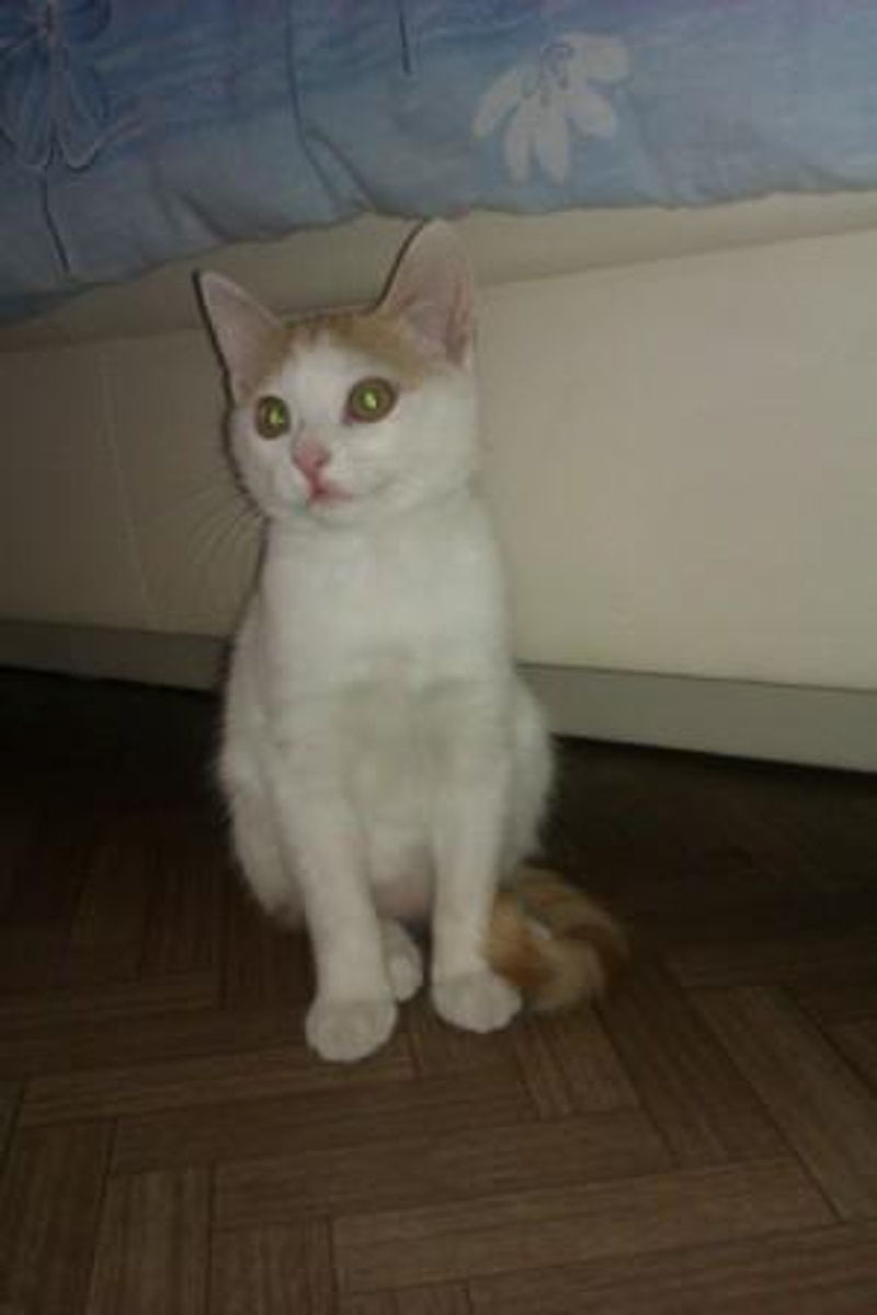 Интересный окрас: рыжие пятна и хвостик на белом фоне! От нежных поглаживаний начинает тарахтеть как трактор