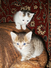 Кошка окотила четырех (полосатые), и нам на дачу подбросили шестерых (рыжеватый, пятнистые, серые и черный) если не раздать тех что подбросили в ближайшие две недели, придется оставить их на даче, где они и умрут с голоду. так вот. котята очень красивые, пушистенькие.
