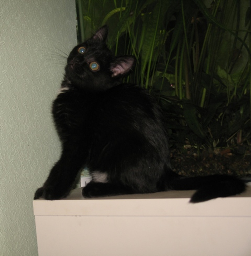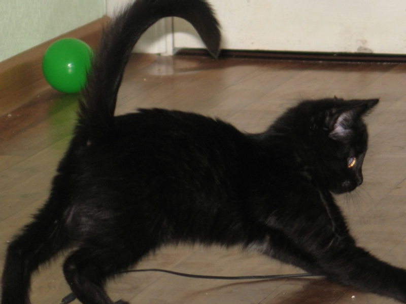 Очень ласковая, игривая, общительная, но в то же время не навязчивая. Нашла ее в подъезде, недельки три ей было не больше, сейчас подросла, осмотрена у ветов, здоровенькая, умненькая, уже понимает, куда положено справлять нужду.