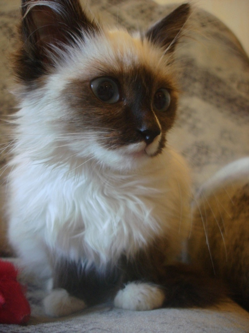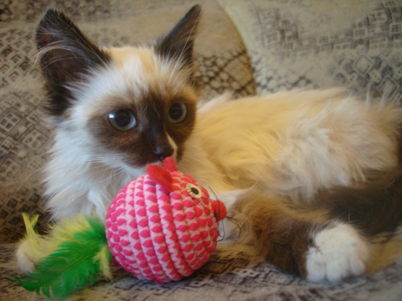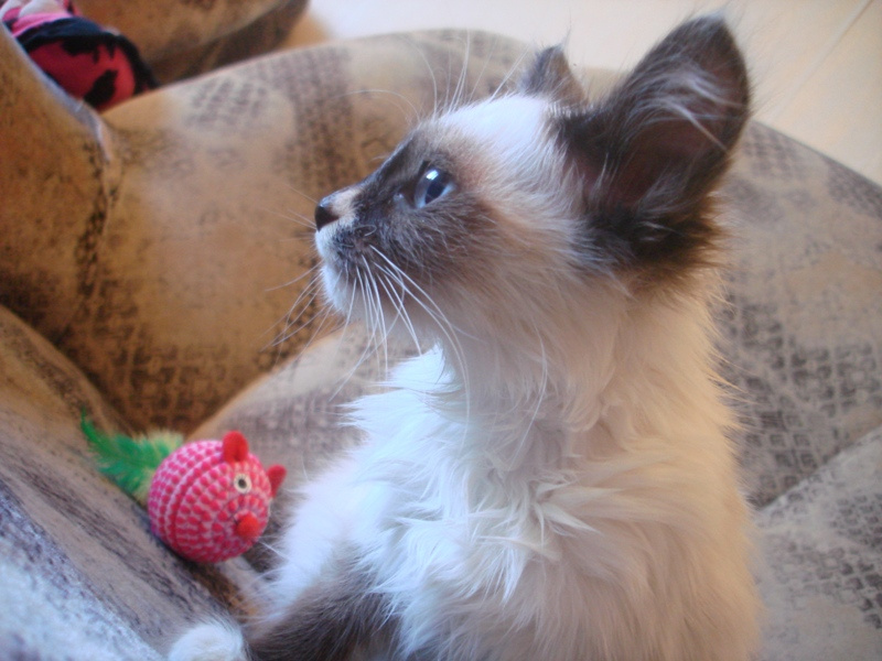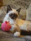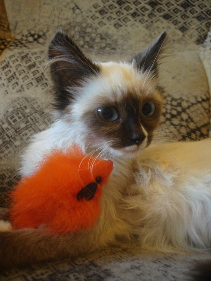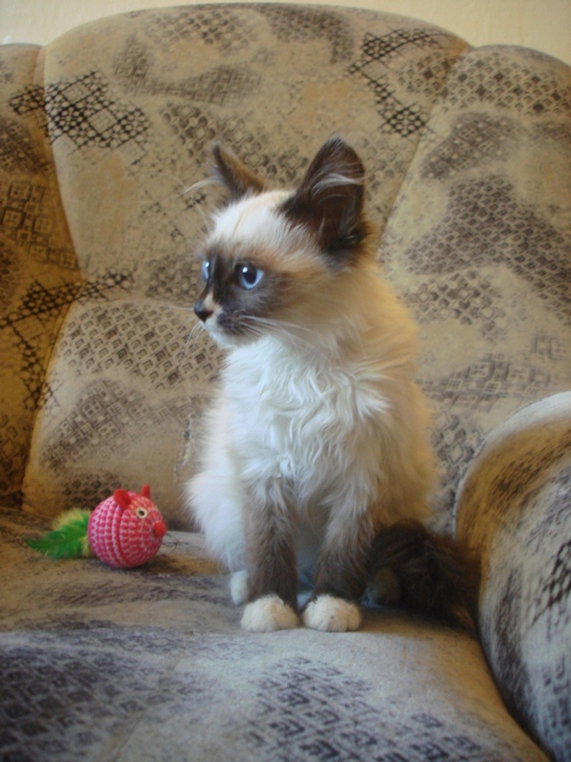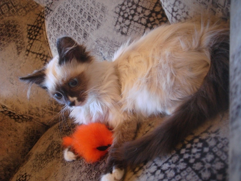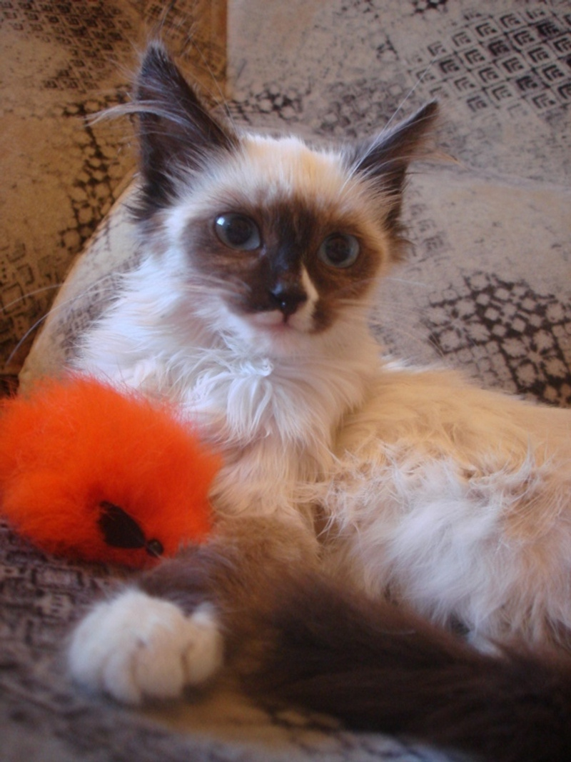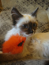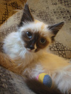 Карапулька по имени Тина, примерно 3 месяца, кушает все подряд, щас пытаемся приучить к сухому корму, ходит в лоток по делам, очень ласковая и ручная деваха. А вообще не девочка., а мечта любой хозяйки. Ну и собственно мы.........