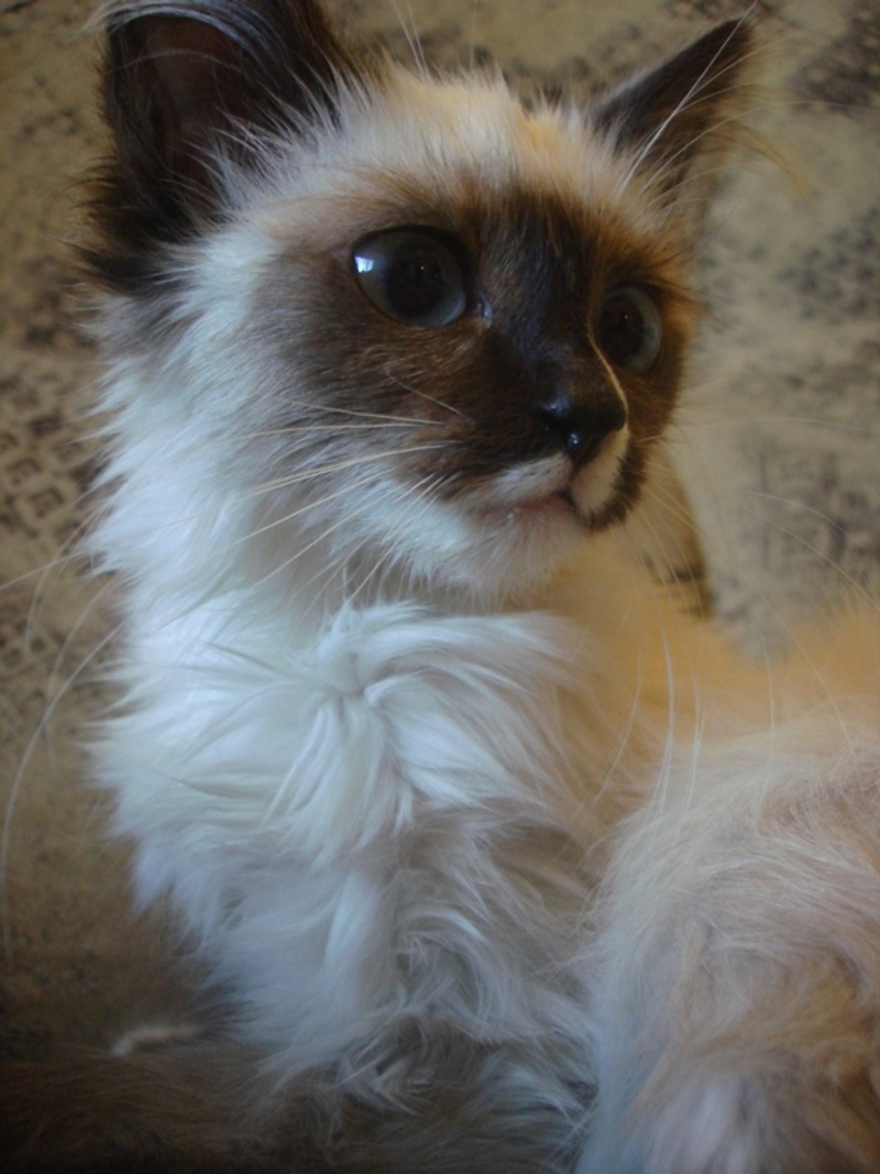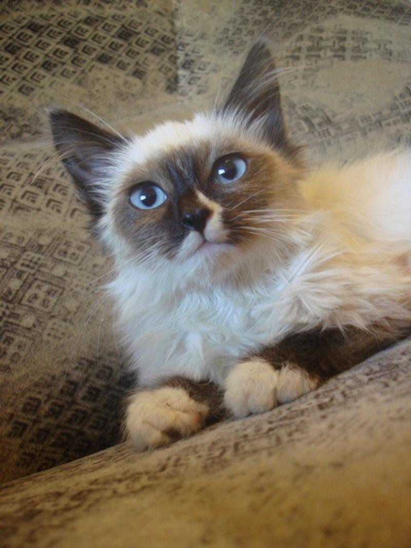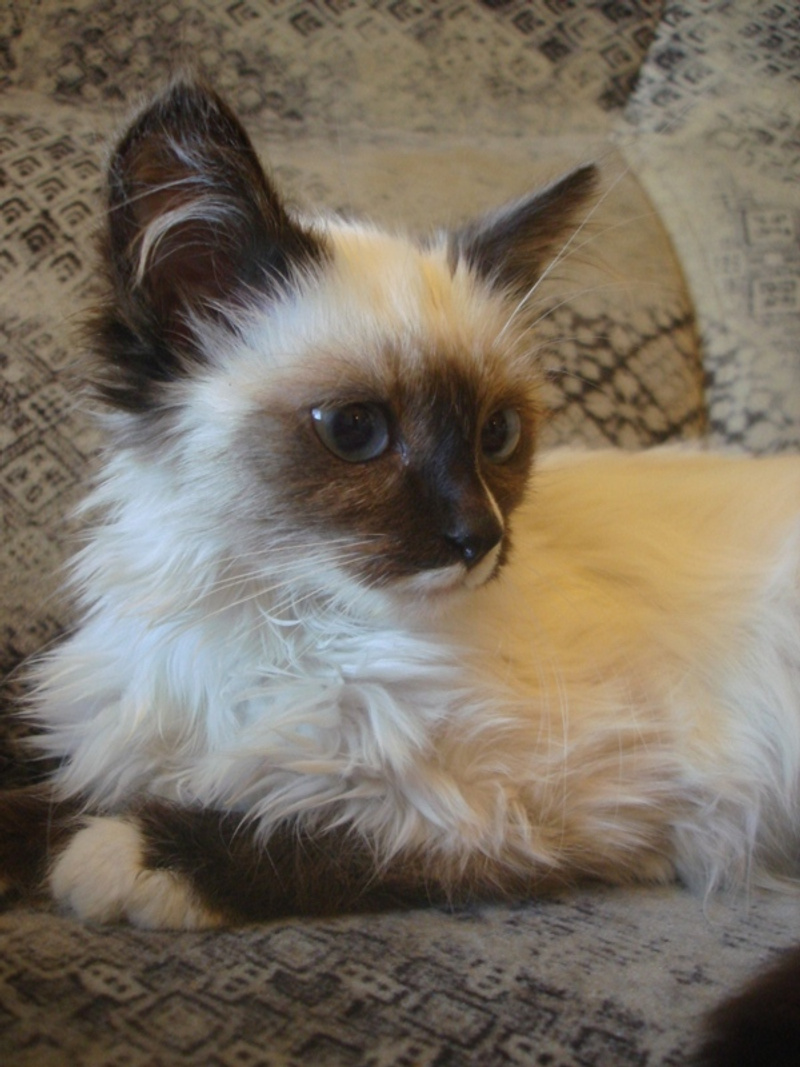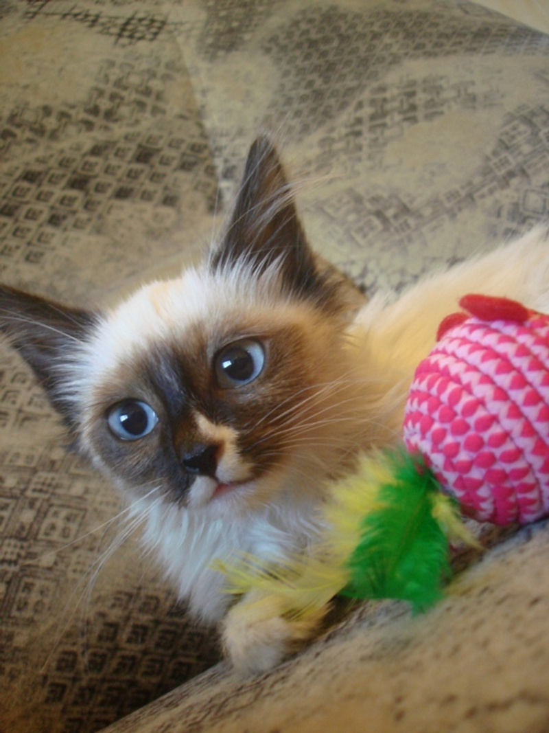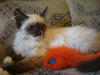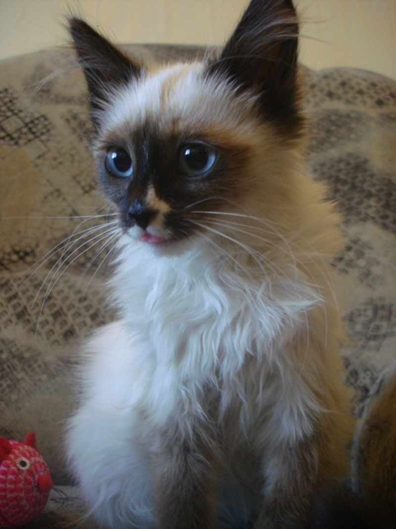 Карапулька по имени Тина, примерно 3 месяца, кушает все подряд, щас пытаемся приучить к сухому корму, ходит в лоток по делам, очень ласковая и ручная деваха. А вообще не девочка., а мечта любой хозяйки. Ну и собственно мы.........