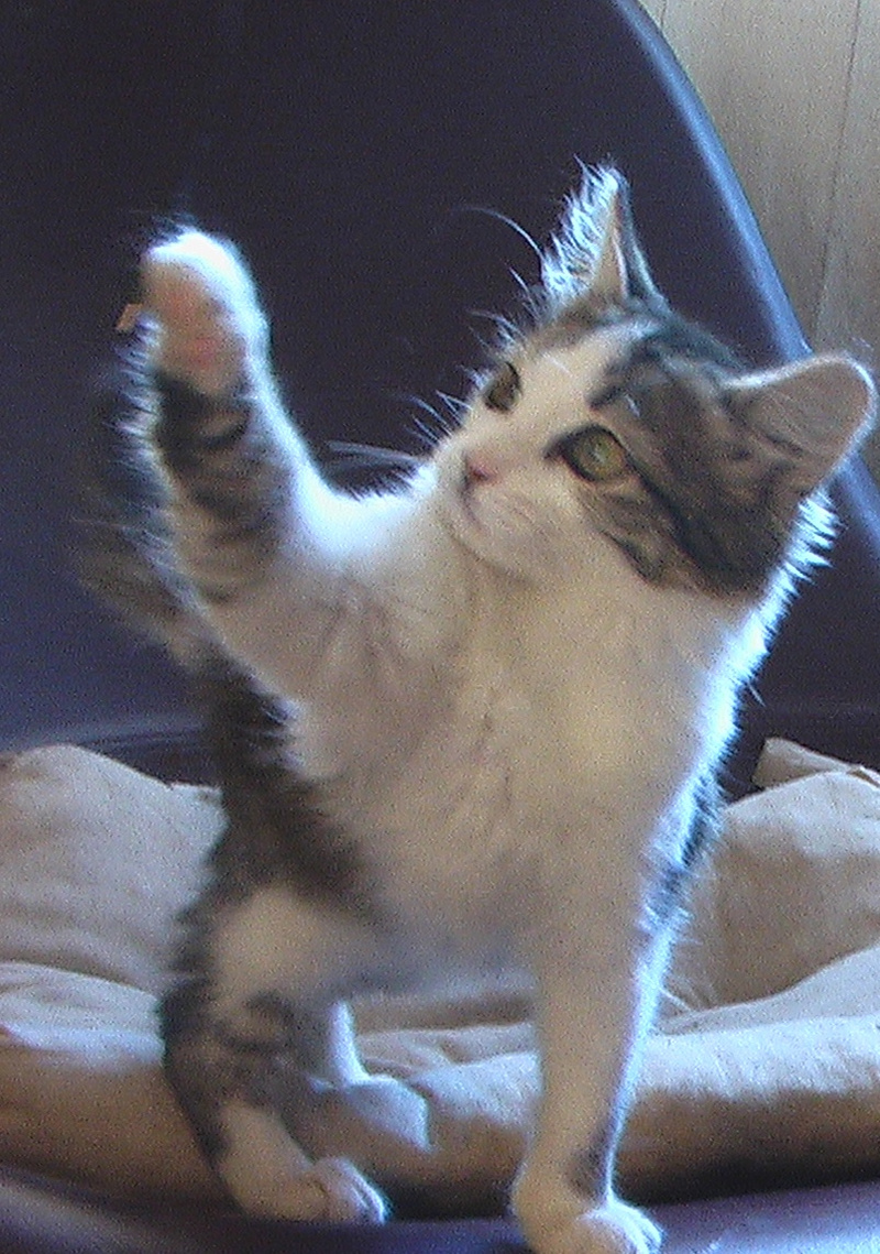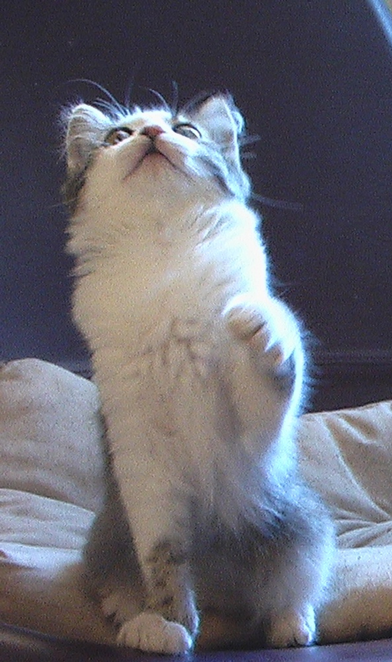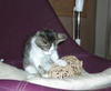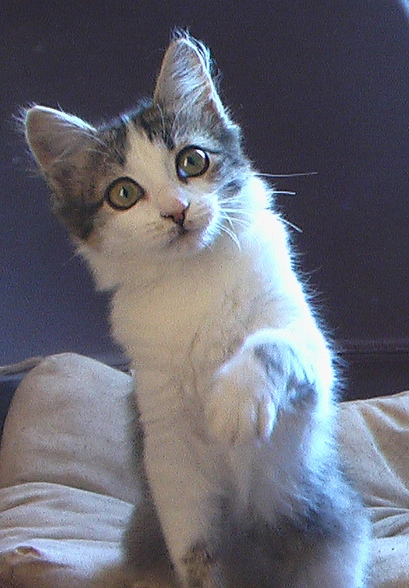 Полупушистая девочка 1,5-2 мес. ищет свой дом. В субботу в холод и дождь найдена на остановке, просто скромно села в ногах в надежде на чудо. Конечно, оставить там я ее не смогла. Отмыли, накормили, проглистогонили, свозили к врачу (клинически здорова). Оказалась кошечка, безмерно любящая людей (даже играть не хочет, лишь бы на руках посидеть, а высшее счастье- когда погладят), ласковая, нежная, не шкодливая. Быстро приучилась к лотку, сейчас ест сушку Роял, а вообще с удовольствием ест все.