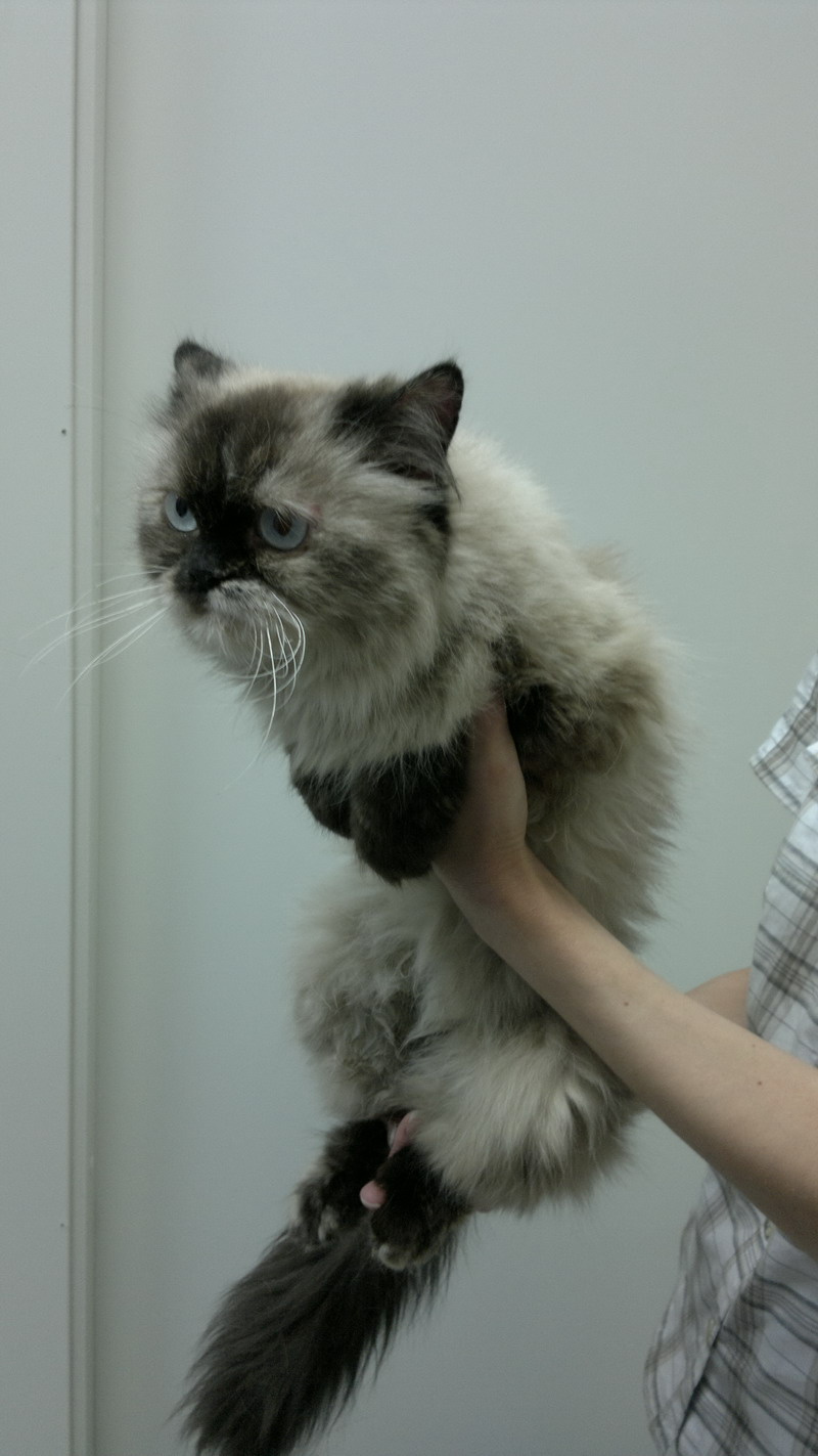 Шанти предали хозяева, растили, может, конечно, и любили, а потом бросили. Но это было уже давно, сегодня у Шанти все отлично, она здорова, стерилизована, с горшком все у нее отлично. Шанти фенотип перса, с небесно голубыми глазками , окрас шубки поинтовая черепаха.