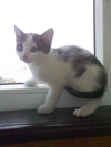отдам в добрые руки красивую ласковую кошечку белого с черными пятнышками цвета.(2 мес.)малышка здорова,игрива.кушает все.К лоточку приучена.очень любит сидеть на руках и мурлыкать.умненькая и с детьми контактирует хорошо.Оченьхочет найти любящих хозяев. тел.89537614165 Анна