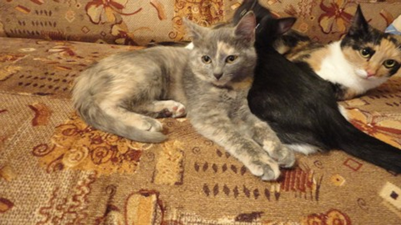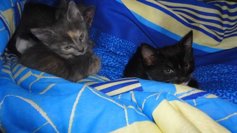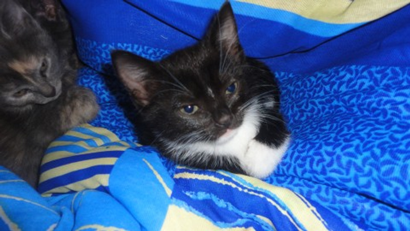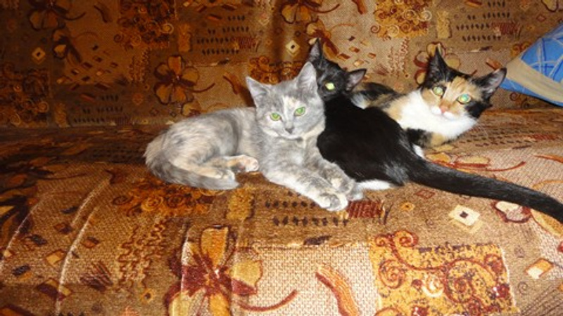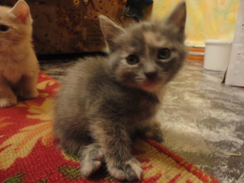 Расцветки котят: черный, черный с белыми носочками, пузиком и галстуком - самый мурлычный)) и пестренкий(серо-персиковый). Очень игривые, черного не получилось нормально сфотать даже...