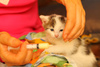 Сейчас это замечательный, очень симпатичный, сильный, крепкий мальчишка в возрасте 2,5 мес., с хорошим аппетитом, очень игривый, забавный и гипер-ласковый! Общается - отвечает мурлыканьем, когда к нему обращаешься, сам приходит на зов, любит сидеть на ручках. Когда ему хорошо - он мурчит от души, аж присвыстывает, валяется на спинке, подставляет пузико, чтоб почесали! К лотку приучен с первых дней. Ищем ему добрых, порядочных хозяев. Он будет замечательным питомцем, другом и просто украшением вашего дома!