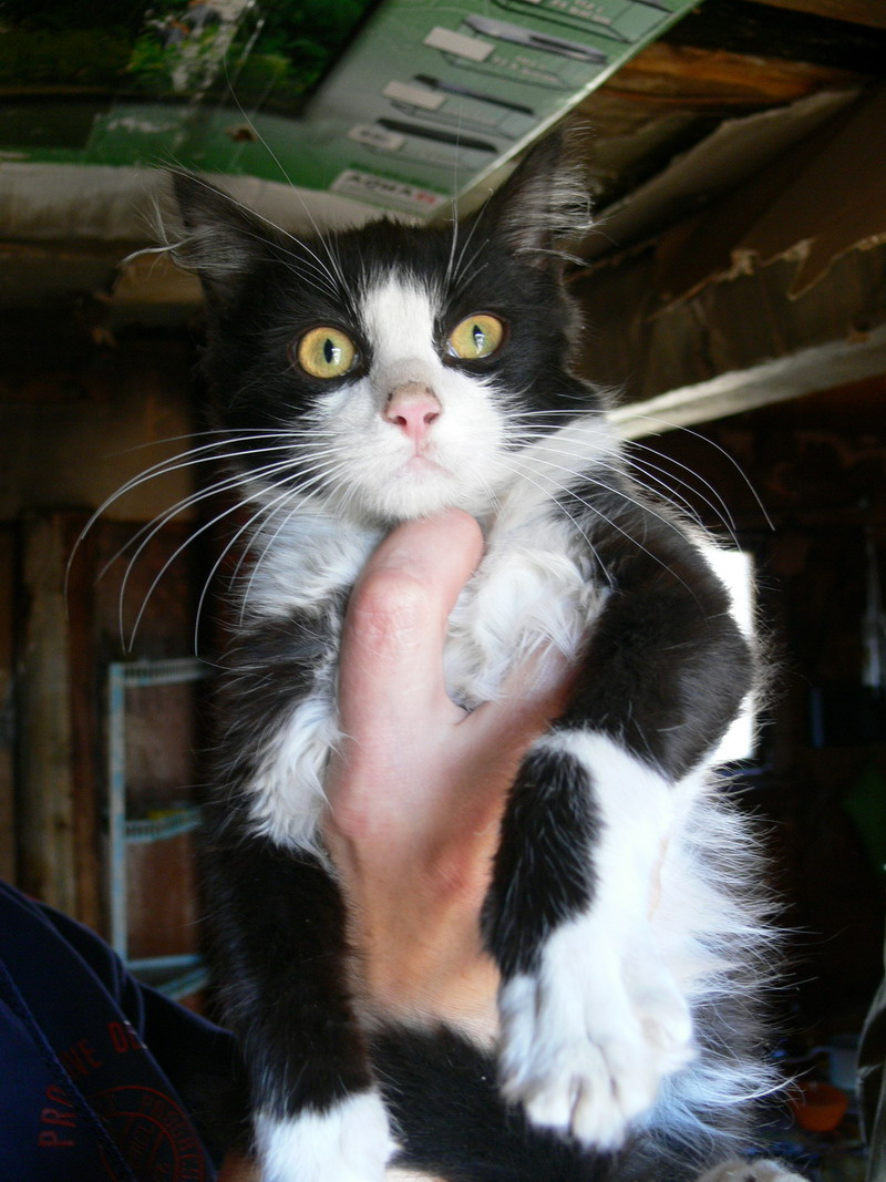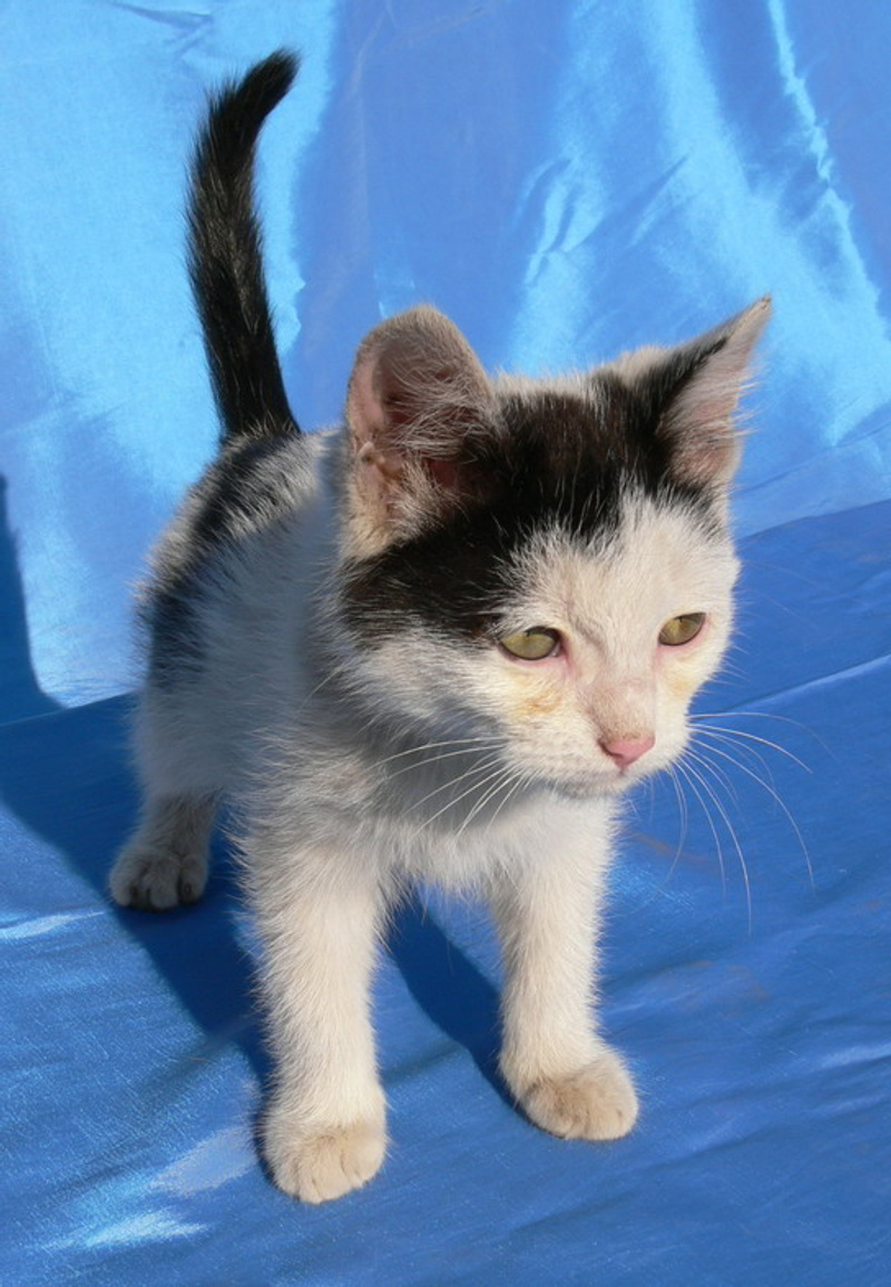 Мальчик бело черный, примерно 3 месяца, немного текут глазки, не вирус точно, нужно просто ему найти дом.