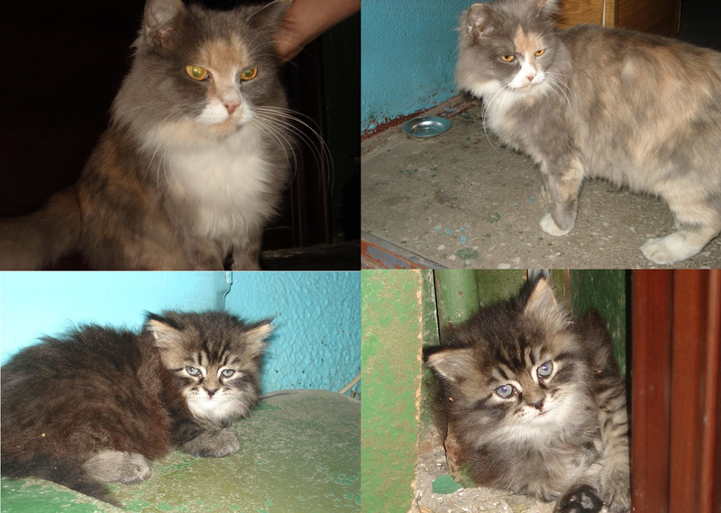 Уже месяц у бабушки в подъезде живет кошка с котенком (мальчик). Кошка ласковая, разговорчивая, домашняя, видимо выкинули, как родила. Малыш дикий - шипит, прячется. Кормят их конечно всем подъездом (котенок пока на мамином молоке), но брать себе никто не хочет. У меня 3 кота с кошкой и собака, себе взять не могу. Они очень ждут добрых любящих хозяев! С моей стороны любая помошь - отвезти к ветеринару, деньги на дальнейщую стирилизацию, прививки, корм на первое время, лоток, лежанки...