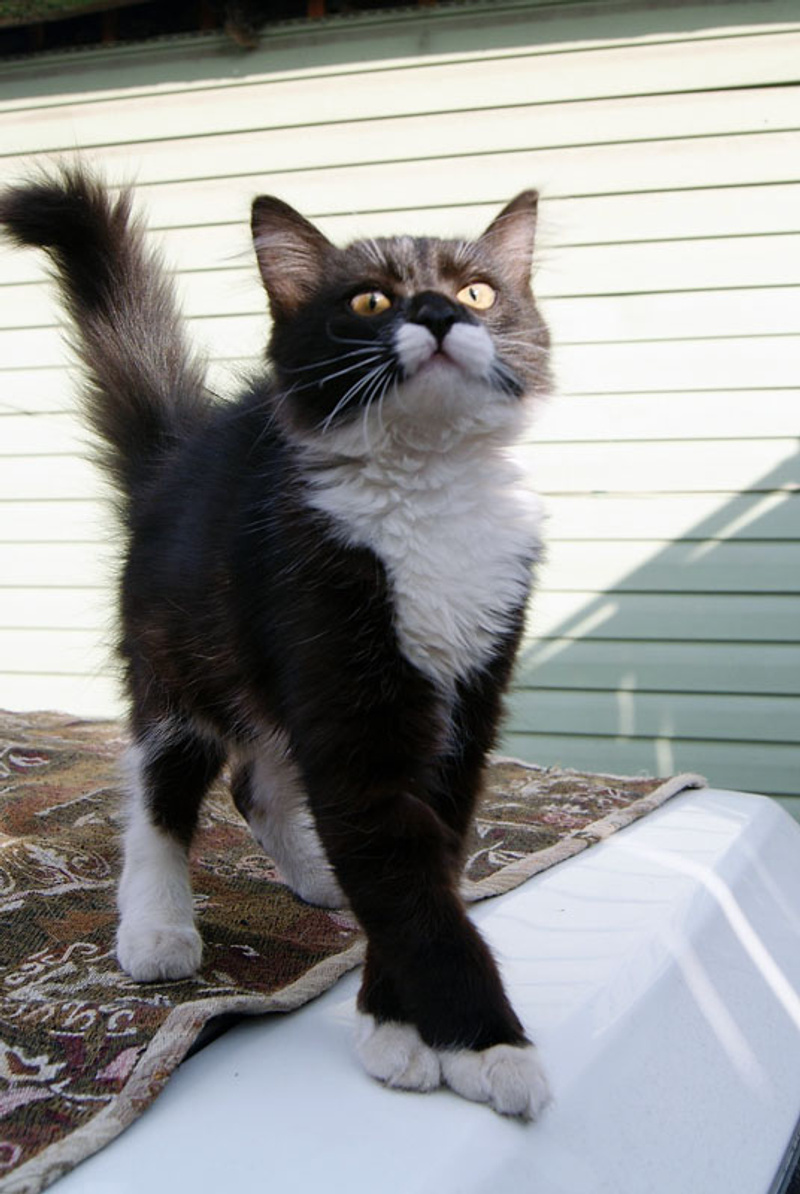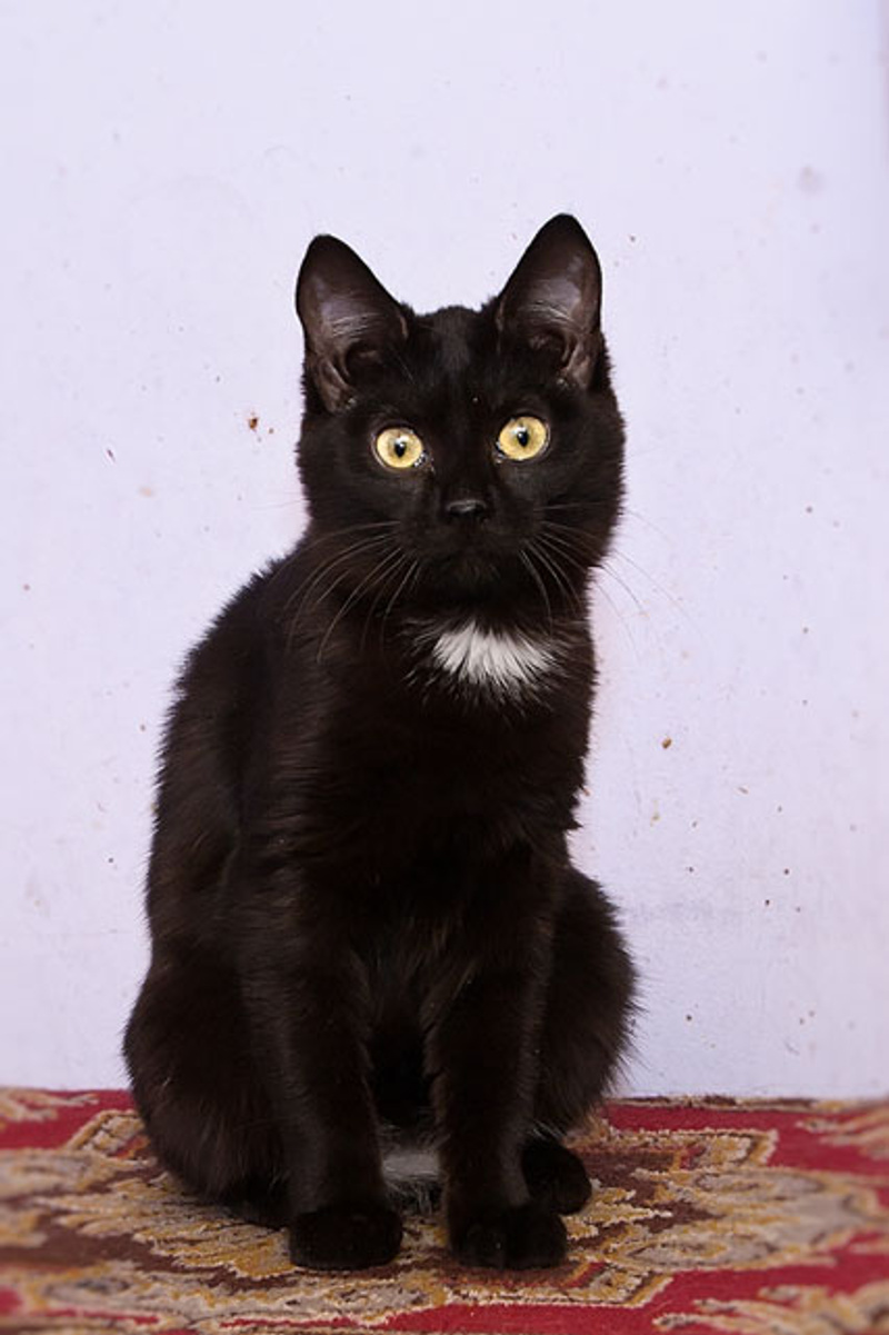 Яркий брюнет с пронзительным взглядом еще совсем молод (7 мес), но очень любвеобилен, сам придёт к вам, сам будет мурчать и ласкаться, вам останется только получать удовольствие. Кастрирован.