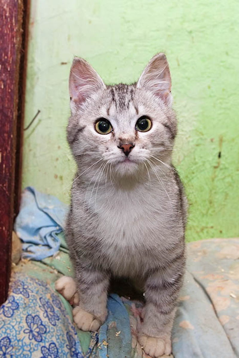Этот котёнок успел переболеть в приюте инфекциями, так что нужен внимательных хозяин, который будет следить за здоровьем любимца. Брать компаньоном можно только к привитому животному.