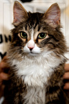 Этот рысенок совсем недавно явно был не одинок. Но сейчас он знает, что такое жить на улице и жить в клетке. И больше туда возвращаться не хочет. Хотя в клетке явно лучше, чем на улице, под колесами автомобиля или на помойке... Рыська осмотрен ветеринарами, которые признали в нем здорового и ухоженного подростка 6-7 мес. отроду. Сейчас на передержке, в районе пл. Труда. Ласковый, мурлукающий, рысеныш урчит от удовольствия на ручках и сам реально на них просится, как ребенок. Шаловливый в меру, лоток уважает, абсолютно не прихотлив в еде. Он просто хочет домой! Если малыш вам приглянулся, звоните 8 913 91ноль ноль21ноль, Ольга.