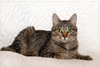 Настоящая домашняя киса, отличающаяся спокойствием, терпением и конечно же лаской. Довольно флегматичная особа. Любит мурлыкать, кушать и спать свернувшись калачиком.