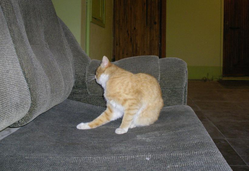 В тамбуре ему одиноко, жалобно мявкает у квартир.