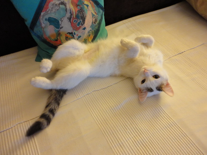 Асе около 2х лет, стерилизованна.Она приходит нежиться и мурчать свою песню перед сном вечером и утром, но не для того чтобы разбудить, а чтоб её по нежили, погладили брюшко и просто рядышком посопеть до будильника. При виде того как она нежится на кресле и какие при этом принимает позы, можно только умиляться. Она тихонечко муркает здороваясь с тобой, когда долго отсутствуешь и приходишь домой.