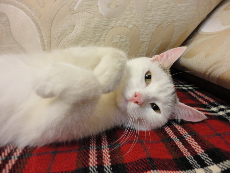 Она приходит нежиться и мурчать свою песню перед сном вечером и утром, но не для того чтобы разбудить, а чтоб её по нежили, погладили брюшко и просто рядышком посопеть до будильника. При виде того как она нежится на кресле и какие при этом принимает позы, можно только умиляться. Она тихонечко муркает здороваясь с тобой, когда долго отсутствуешь и приходишь домой.