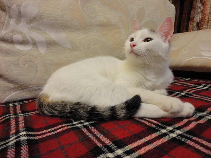 И да, кроме её супер характера она ещё и красавица внешне. Окрас как у неё, называется Турецкий ван с янтарными глазами с оливковым оттенком. Основной цвет- белый, хвост и основание ушек - агути.