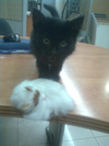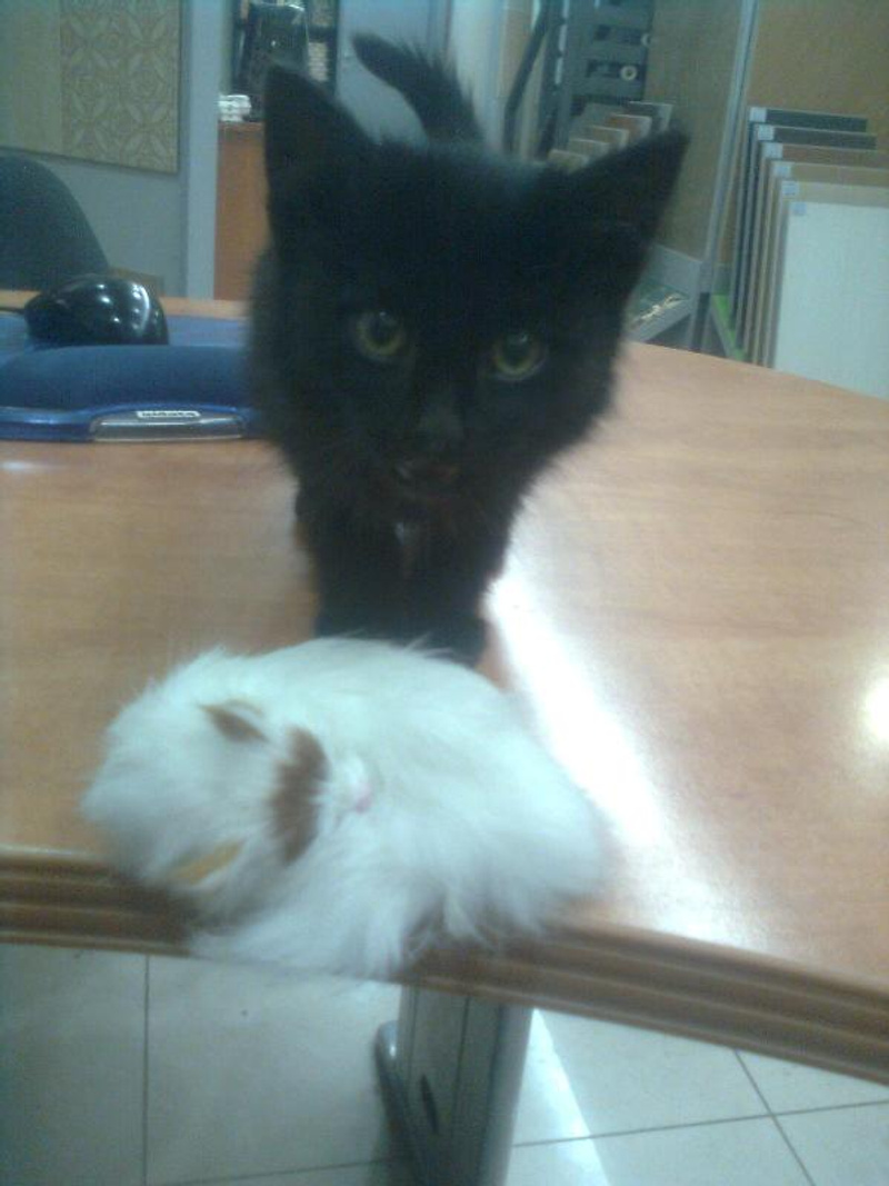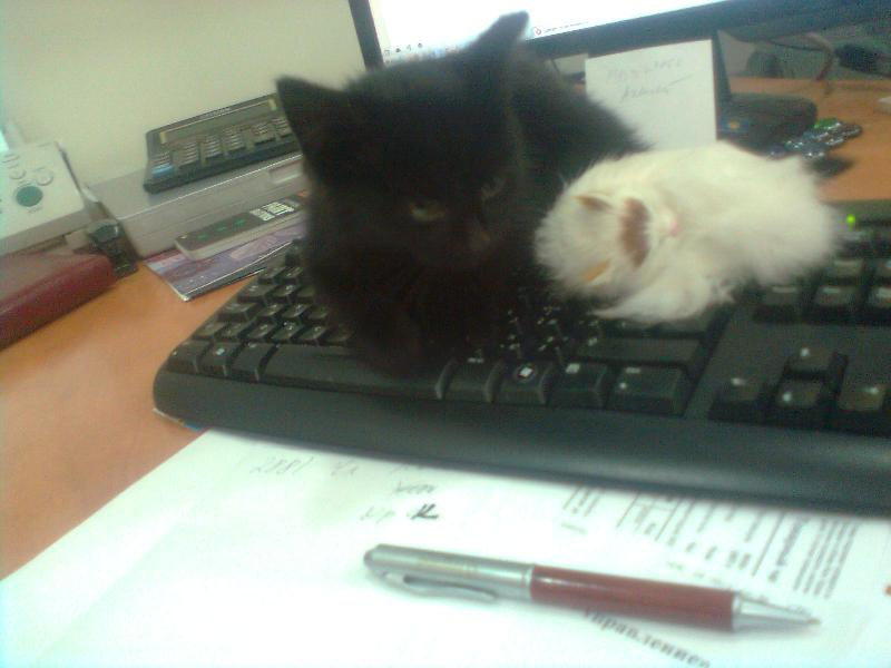 Рано утром придя на работу, моя коллега обнаружила у дверей офиса вот такое чудо. Котенок был очень грязным, а уши.... У бедного ребенка они были забиты песком! Чудо почистили, накормили. Весь день котейка работал со мной, а вечером поехали знакомиться с моей котобратвой. Дочура назвала его Мишкой ( уж очень мордочкой похож на медвежонка). Кушает все, лоточек - на 5+ с первого раза! Мишка очень ласковый малыш! Надеюсь, что найдется замечательный хозяин для такого чуда.