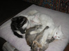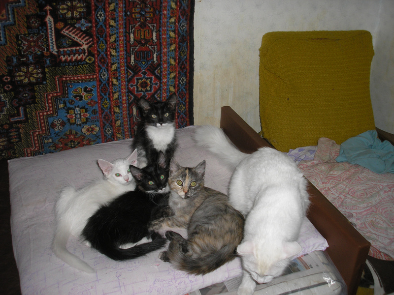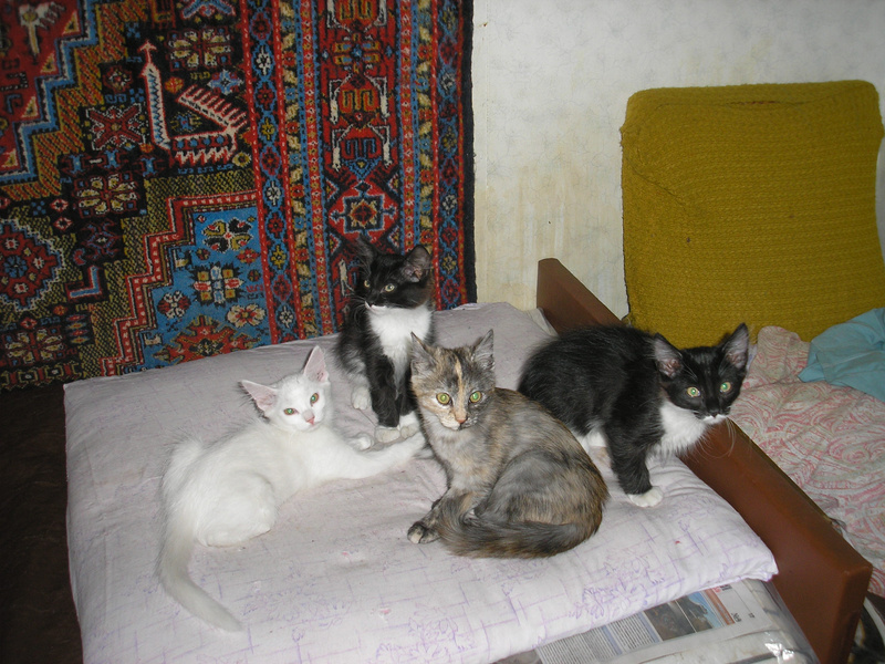 Отдадим красивую белую кошку 1,5 года, похожую на ангорскую породу, и ее четырех котят: двух мальчиков черно-белых и кошечек,одну белую, другую трехцветную с очень оригинальным сочетанием цветов окраски. Все котята здоровенькие,послушные но любят и пошалить. К горшку приучены.