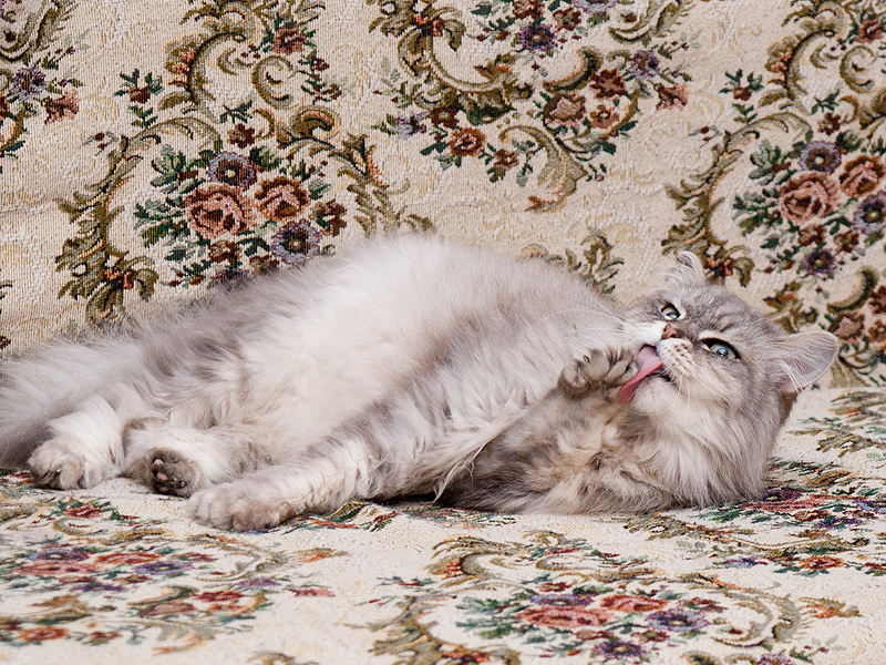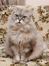 Несмотря на солидный возраст, котя любит играть и резвиться. И очень любит ласку и общение с человеком. Довольно разговорчивый.