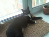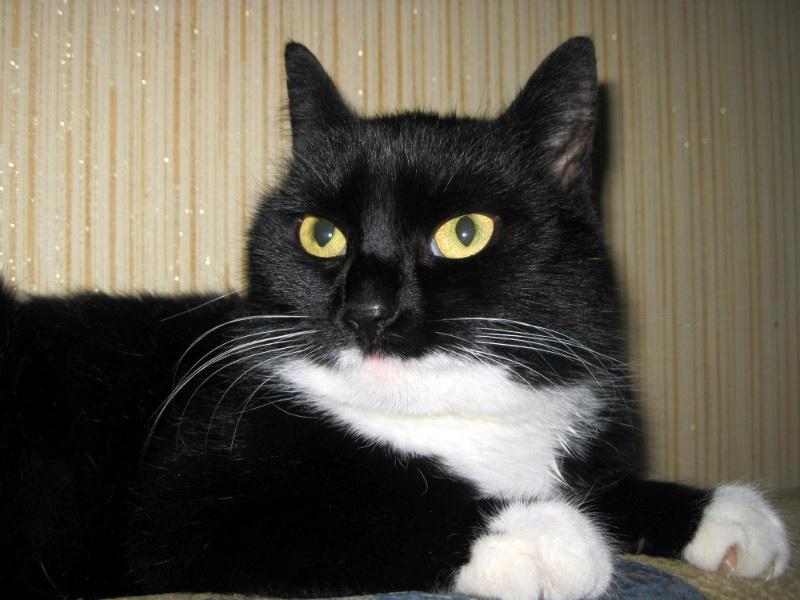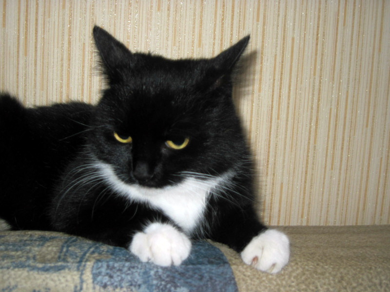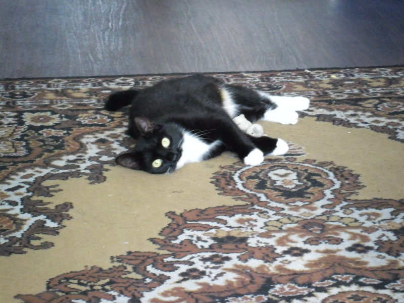 Киска оказалась скромной, застенчивой кошечкой. С себе подобными существами ладит.