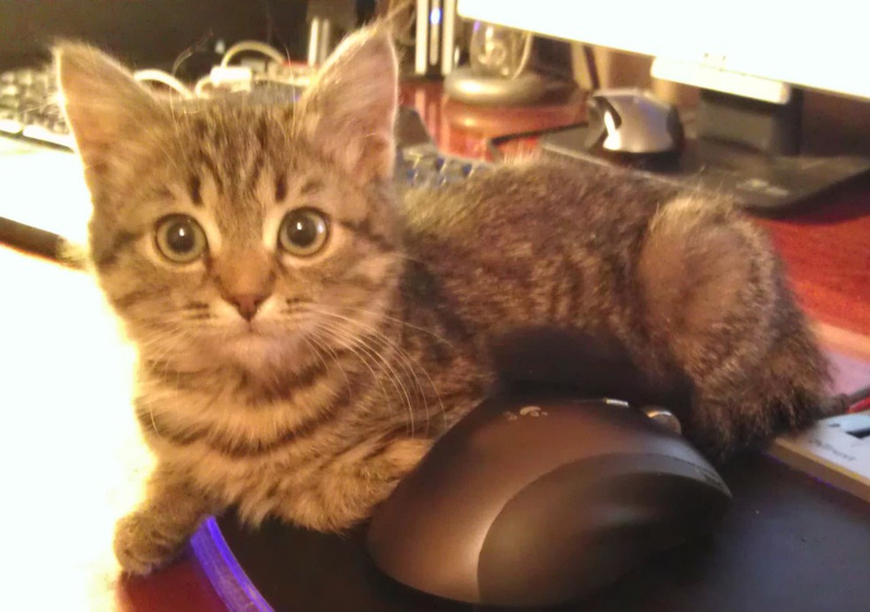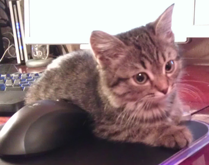 Любит лежать на столе возле компьютера.