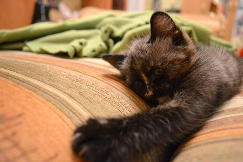 Родилась 7го ноября, уже кушает корм, и сухой и желе, к лотку приучена.