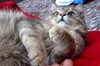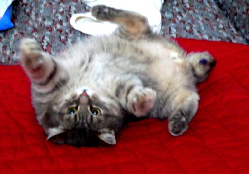 С людьми очень-очень ласков. Если взять на руки, и он поймет, что ему не будут ставить уколы и ковыряться с хвостом, то может ласкаться и мурчать часами. В общем, очень доверяет он людям. Несмотря ни на что.