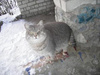 Собак побаивается, но тоже без особой истерики (хотя для бездомных кошек собаки почти всегда классовые враги).