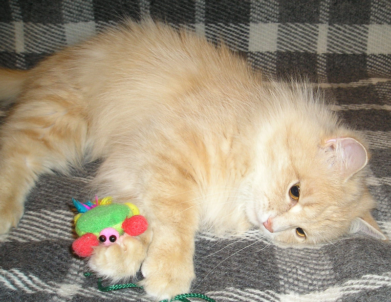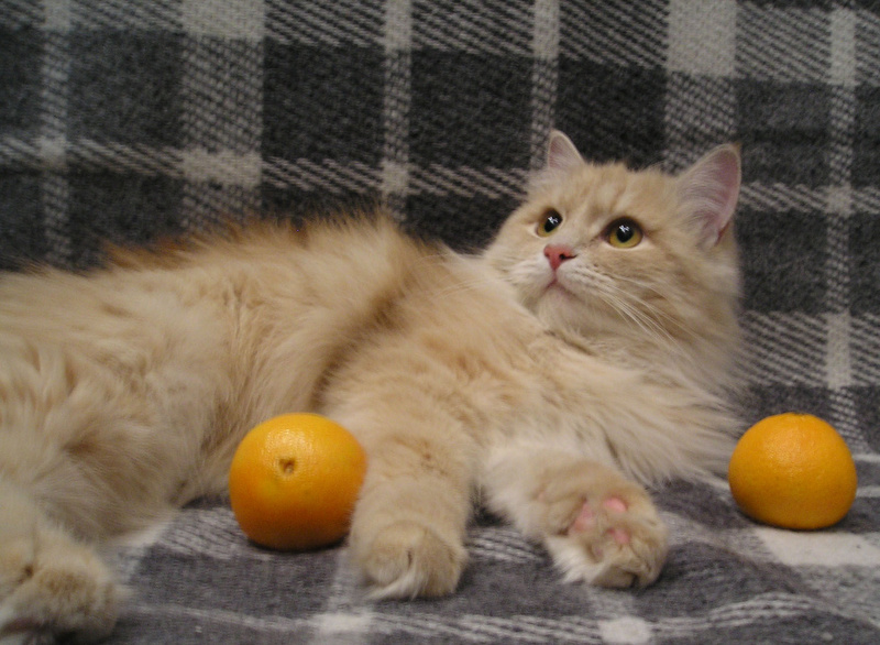).Хорошо ладит с другими кошачьими (по началу не подпускает, но через неделю-две уже играются). К цветам равнодушна (ну, кроме, драцены - но перед ней ни один кот не устоит): не грызет, горшки не роняет. Стрижку когтей и расчесывание богатой шерстки переносит хорошо.