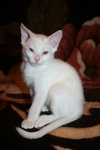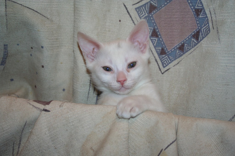 Котёнок, 2 мес. чисто белый, НЕ ГЛУХОЙ, к лотку приучен, кушает Про План для котят и РК для котят. Только в квартиру, только под договор заверенный свидетелями и возможностью проведывать раз в месяц(соглашусь на еженедельный фотоотчёт в течении первых 6 месяцев)