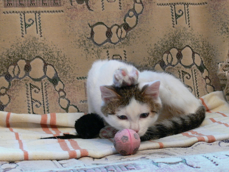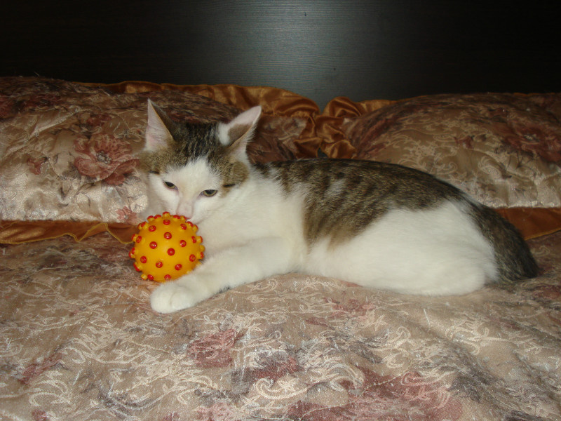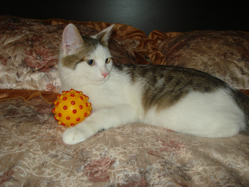 Очень любит мурчать на ручках и гонять с человеком в шарик.