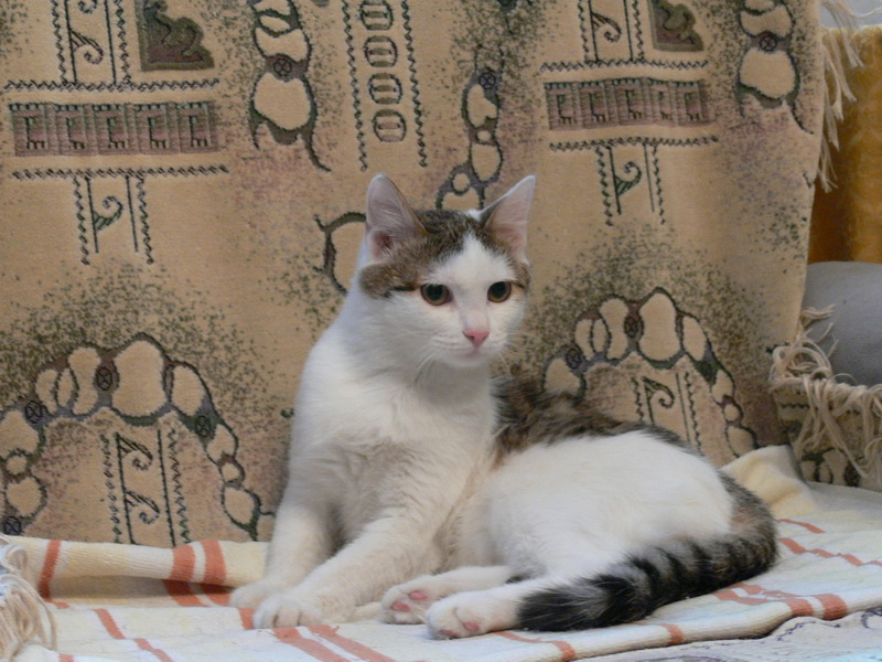 Мальчишка очень игривый, озорной, воспитанный, горшок знает на отлично. Кушает сухой корм , на аппетит не жалуется. Обещает вырасти большим и красивым котом.