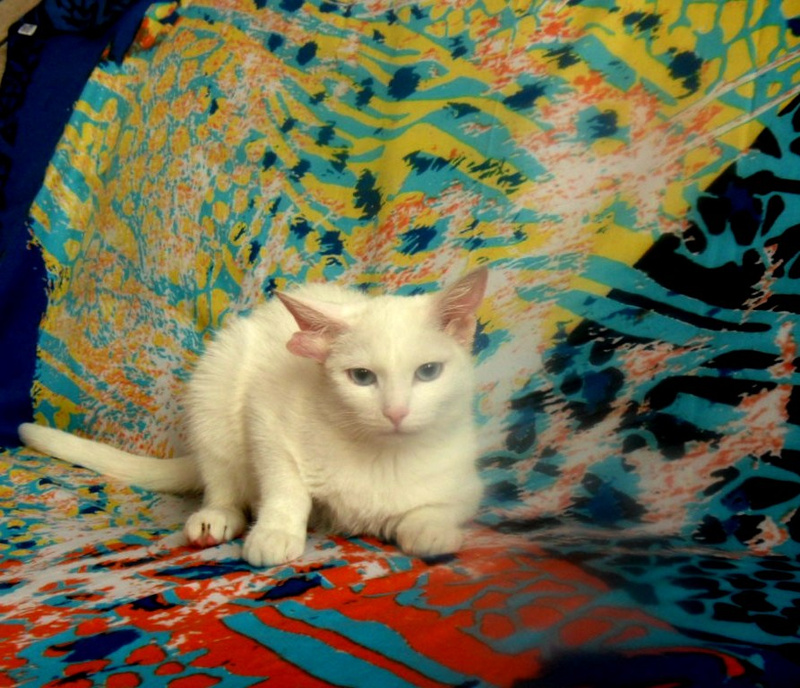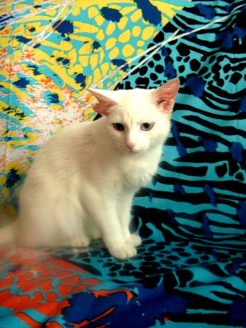 нам 5 месяцев,мы здоровы только вот ушки у нас не слышат,но это не помеха оставаться мне самой обычной кошкой.Знаю на 5 лоточек,в еде не прихотлива,хорошо отношусь к домашним животным,люблю деток.Кошечка отдаётся по договору с последующей стерелизацией.