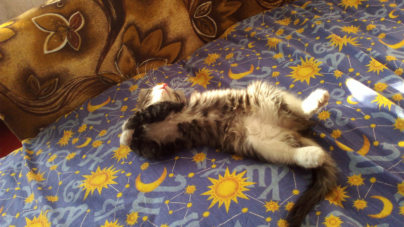 Алиса,очень ласковая,постоянно мурчит и проситься на ручки,чтоб ее погладили и обратили на нее внимание!Как и все дети очень любит играть и резвиться,но в тоже время знает,что когда выключили свет ночью,значит надо тоже ложиться баиньки и не играть