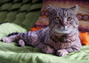 около 9 месяцев , стерилизована . Серенькая с бежевыми полосочками.
