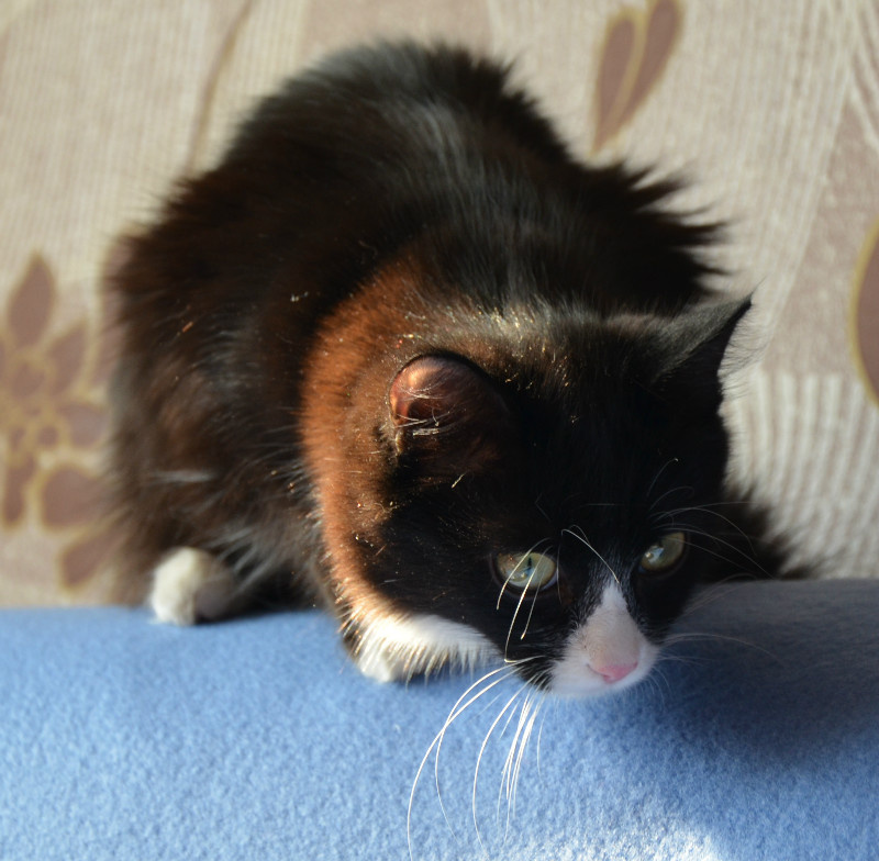 Девочка наша красавица, длинные, длинные белые усы , зеленоватые глазки, шелковистая шерстка , длиннющий пушистый хвост.
