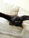 Но в тоже время он еще и бандит, бегает, прыгает, играет и в процессе игры засыпает, потом соскакивает и опять помчался по делам. Лоточке нашел сам и сразу, он большая умничка. Хоть такая корова и нужна самому, НО... мы ищем самых лучших во всей вселенной хозяев, чтоб Уголек мог отдать всю свою ласку и любовь и получить то же в замен.