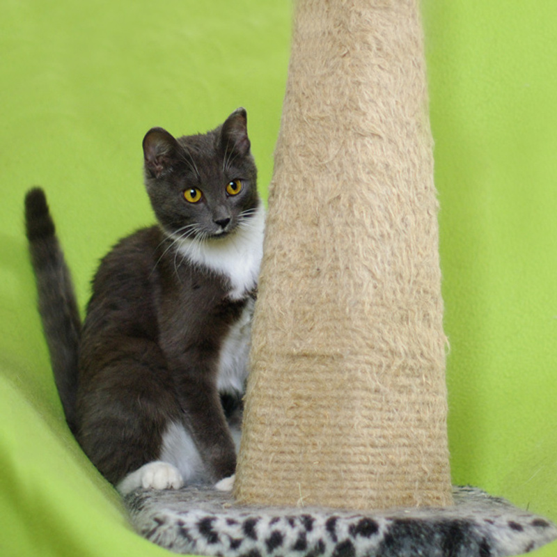 Дымна прекрасно адаптировалась к жизни в новых условиях: с лотком никаких проблем (использовали опилочный, а потом глиняный, комкующийся наполнитель); приучилась есть сухой корм (Роял Канин для стерилизованных); легко переносит отсутствие человека в рабочее время, т.к. в состоянии сама занять себя, но очень рада пообщаться (играет с удовольствием); в силу своего дружелюбия, с удовольствием воспринимает общество другой кошки (соседка по передержке).
