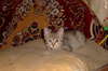 • Тиграшка влюбилась в Масяньку и Фунтика. Играет хвостом Маськи и пытается вытянуть из клетки его игрушки, тот терпит. Фунтик ворует из мисочки мелкой ее паштетик, а та в компенсацию за понесенные моральные потери бегает за ним хвостом, мостится спать возле него днем и пытается поиграть в кошки-мышки. Прыжки по шторам и по банным халатам прекратились, теперь есть приложение в виде картонной когтеточки и мячика на резиночке. Любимое спальное место - на подушке плюшевой.