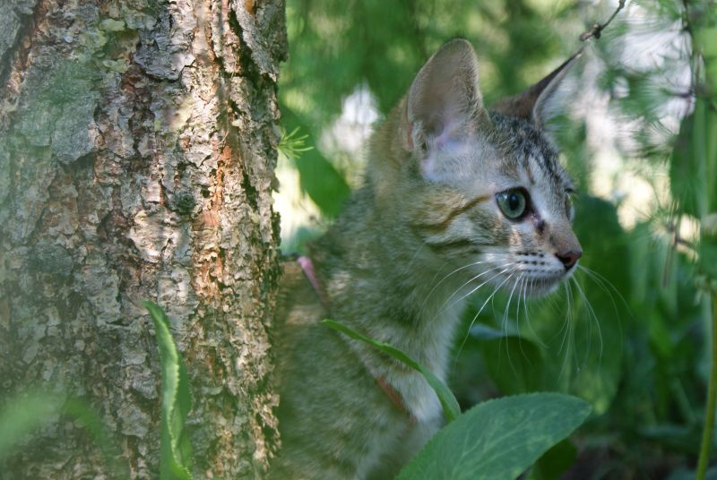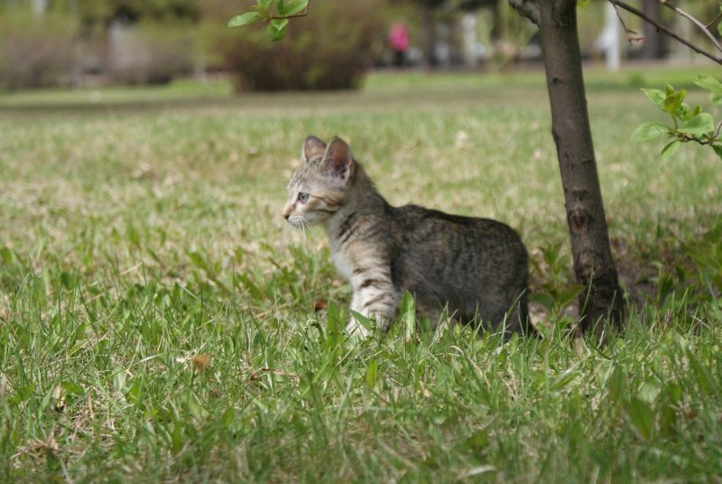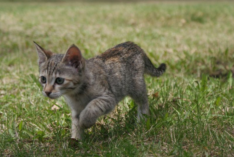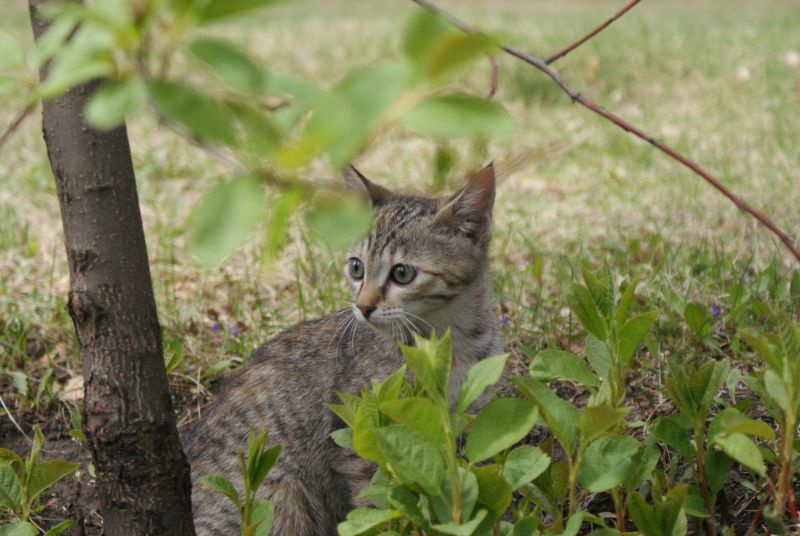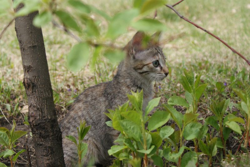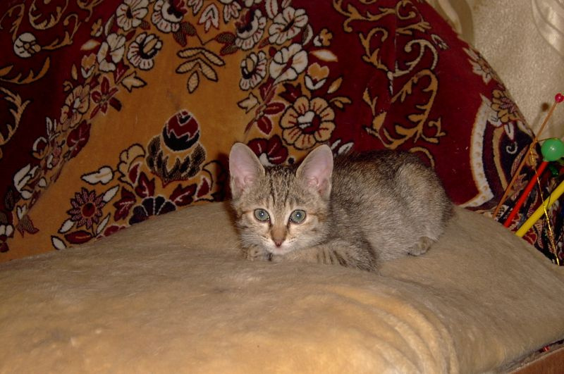 Тиграша совсем освоилась на новом месте, носится как сайгак по прериям, играет. Очень подвижный ребенок.