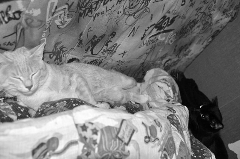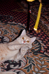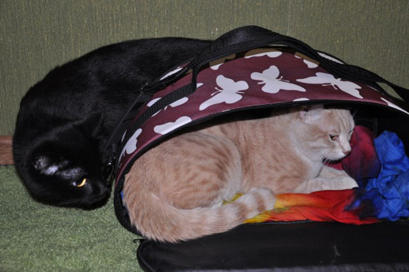 Мой кот и раньше проявлял интерес к гостям, но тут просто ни на шаг не отходил. К вечеру дети уже почти не шипели друг на друга, но абориген не переставал таращиться на пришельца. С утра котейки уже вовсю дружились-носились-бесились по комнате, снося, буквально, всё на своем пути. А вот с собакой у котика отношения не сложились, поэтому такое соседство в будущем доме нам совсем не подходит.