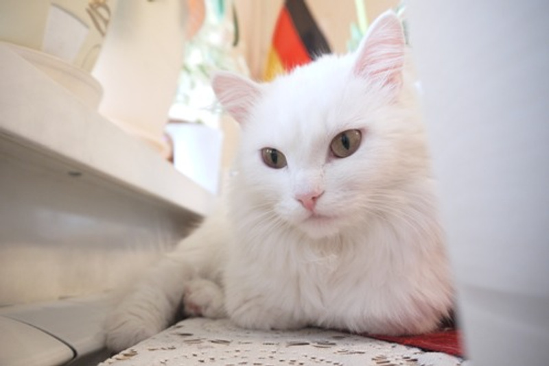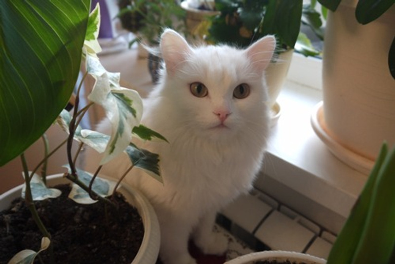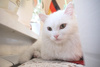 Отдадим в хорошие руки белую пушистую ангорку с желтыми глазами. Стерилизованная и привитая, приучена к лотку. 1 год.