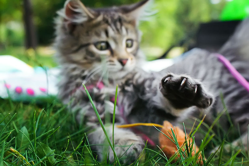 Телевизора не надо, можно сидеть и смотреть, как он играет, этот маленький охотник проделывает все с игрушечной мышкой, как с настоящей. Наиграется и бежит,чтобы его погладили и похвалили. И уже тарахтит-тарахтит, когда гладишь. А потом снова несется за мышкой.