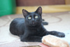 Пантерообразный котенок (черного окраса) с потрясающей грацией. Удивительно, какие грациозные кошачьи позы принимает этот, еще совсем молоденький котенок-подросток. В нем четко видны задатки роскошного зверя.