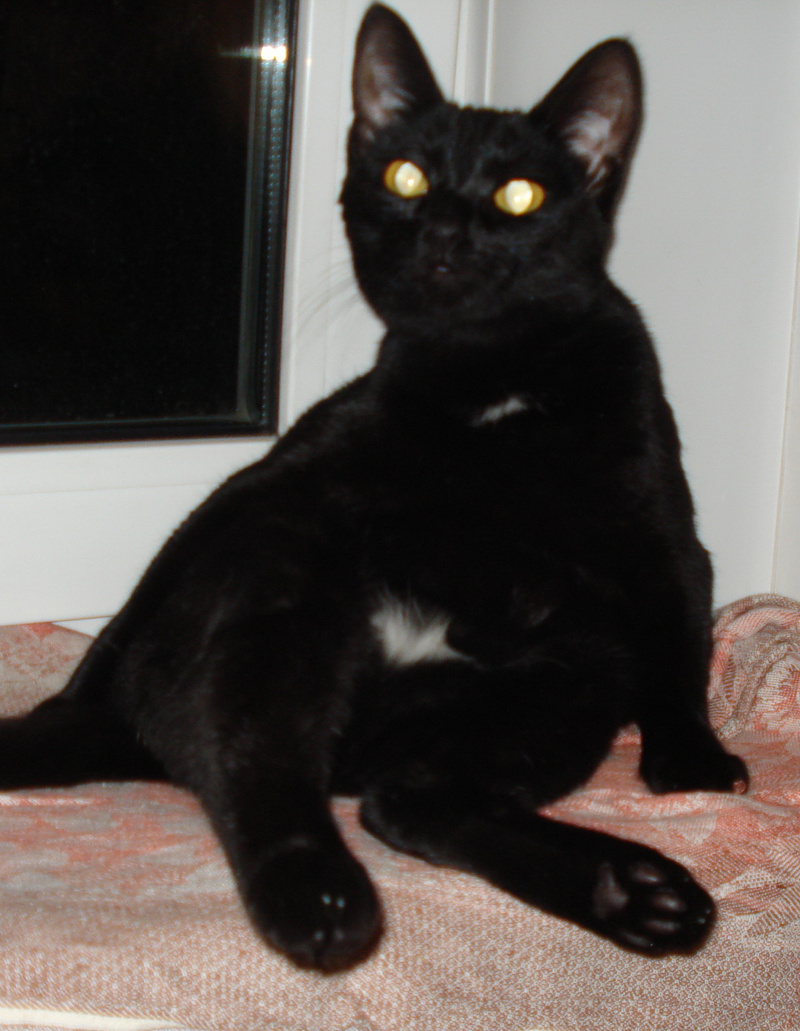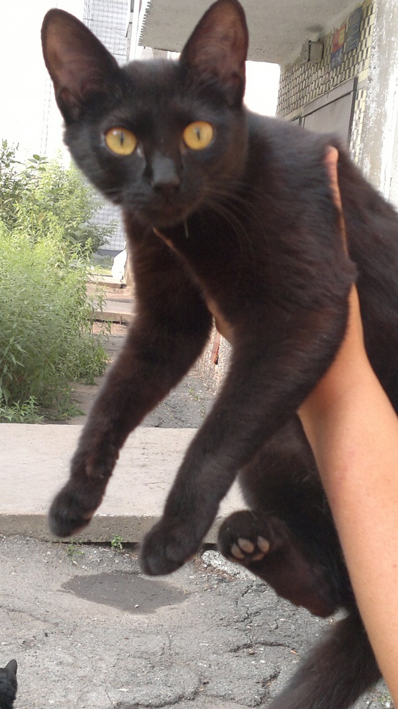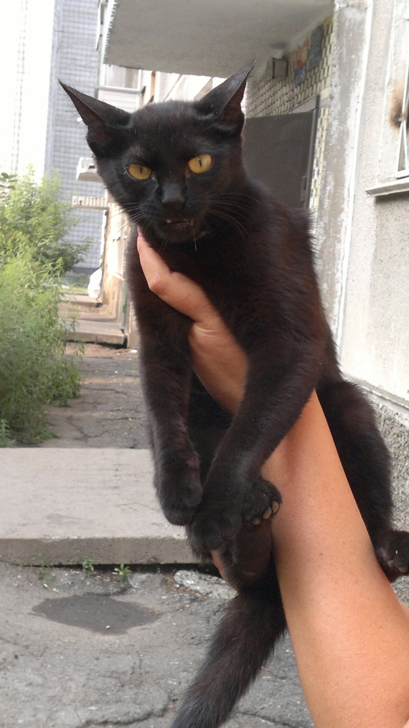 Разрешите познакомить Вас очаровательной девушкой. Она очень изящна, грациозна, умна, спокойна, ласкова. Решила ее назвать Бася, вот смотрю на нее и мне кажется, что она Бася. Хотя на улице ее, как только не звали. Мы знаем, чья это кошка, но хозяева отказались от нее, сказали не наша, а мы и не стали навязываться. Что она домашняя по ней видно сразу, в подвал она не идет, сидела под плитой подъездной, с раненым хвостом, совершенно истощенная, видимо отлеживалась после того как упала с балкона. Сейчас у ребенка уже все хорошо