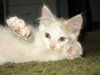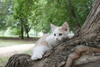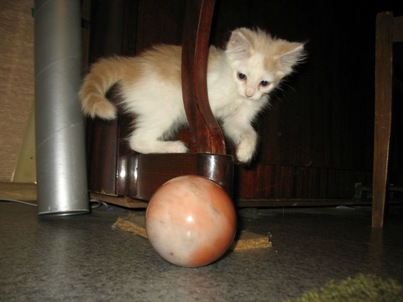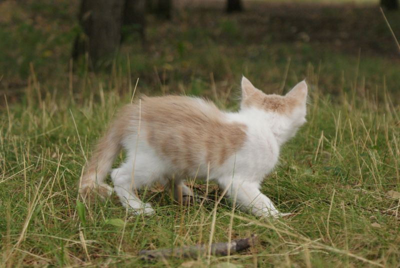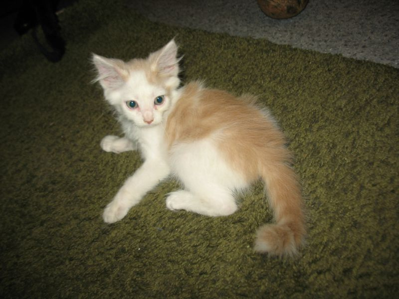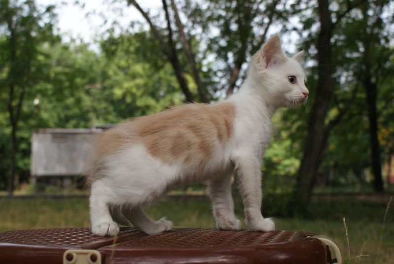 Был слабенький, истощенный. После разных манипуляций превратился в озорного рыже-белого хулигана. Строит всех, начиная от хозяйских кошек, заканчивая больших собак.